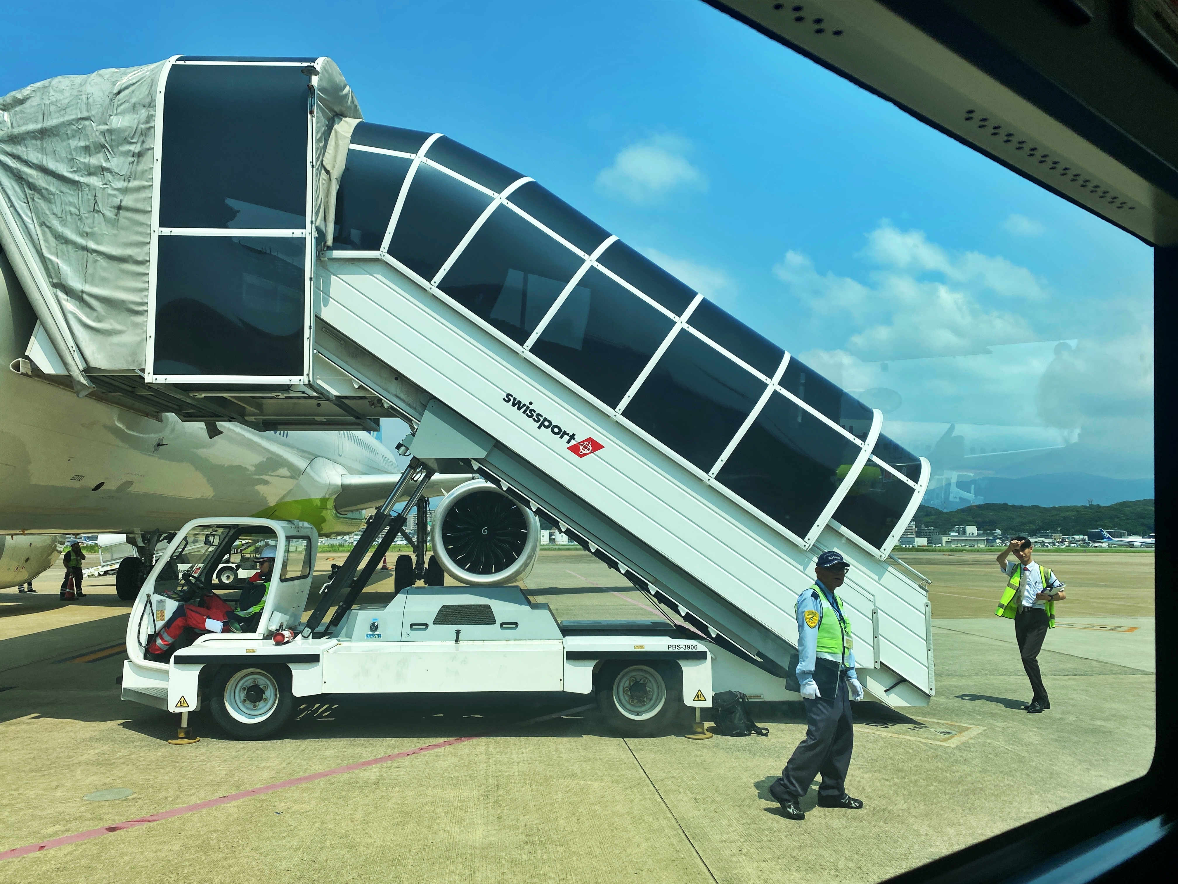 조금 번거롭습니다. 내려가서 버스를 타고 버스에서 내린 뒤 스텝카를 거쳐 항공기에 올라타야 합니다.