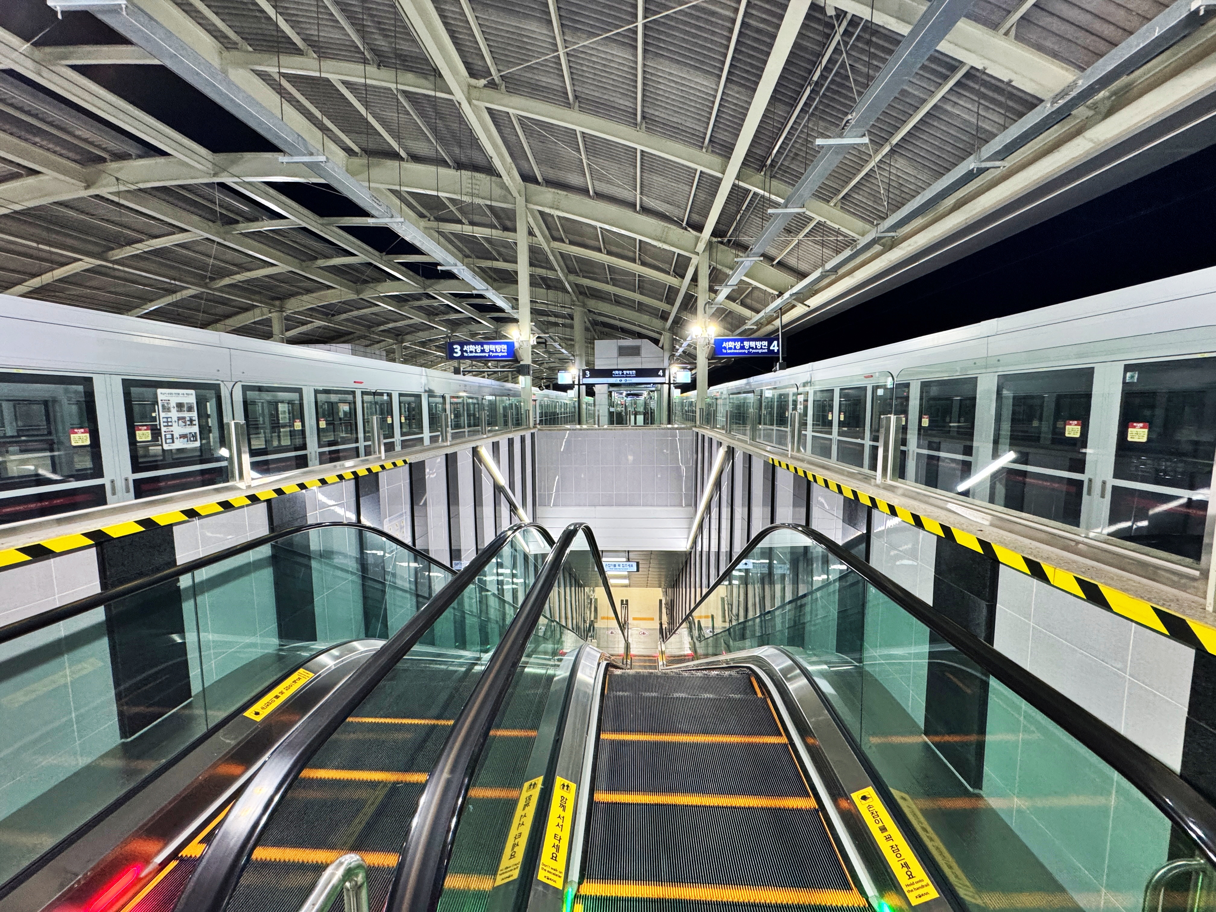 에스컬레이터를 타고 하행 승강장으로 올라왔습니다.