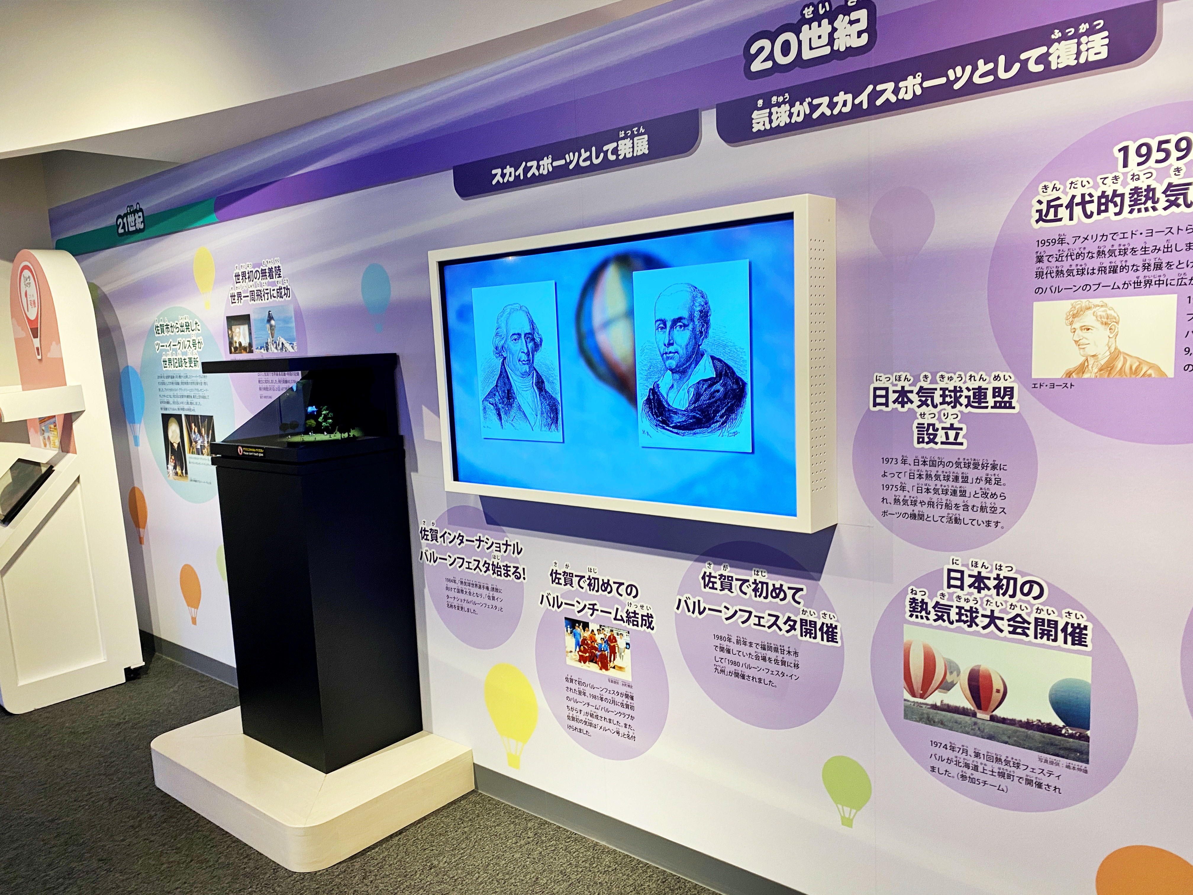 일본 열기구 문화에 공헌한 사람들의 사진과 기념품이 헌액되어 있습니다.
