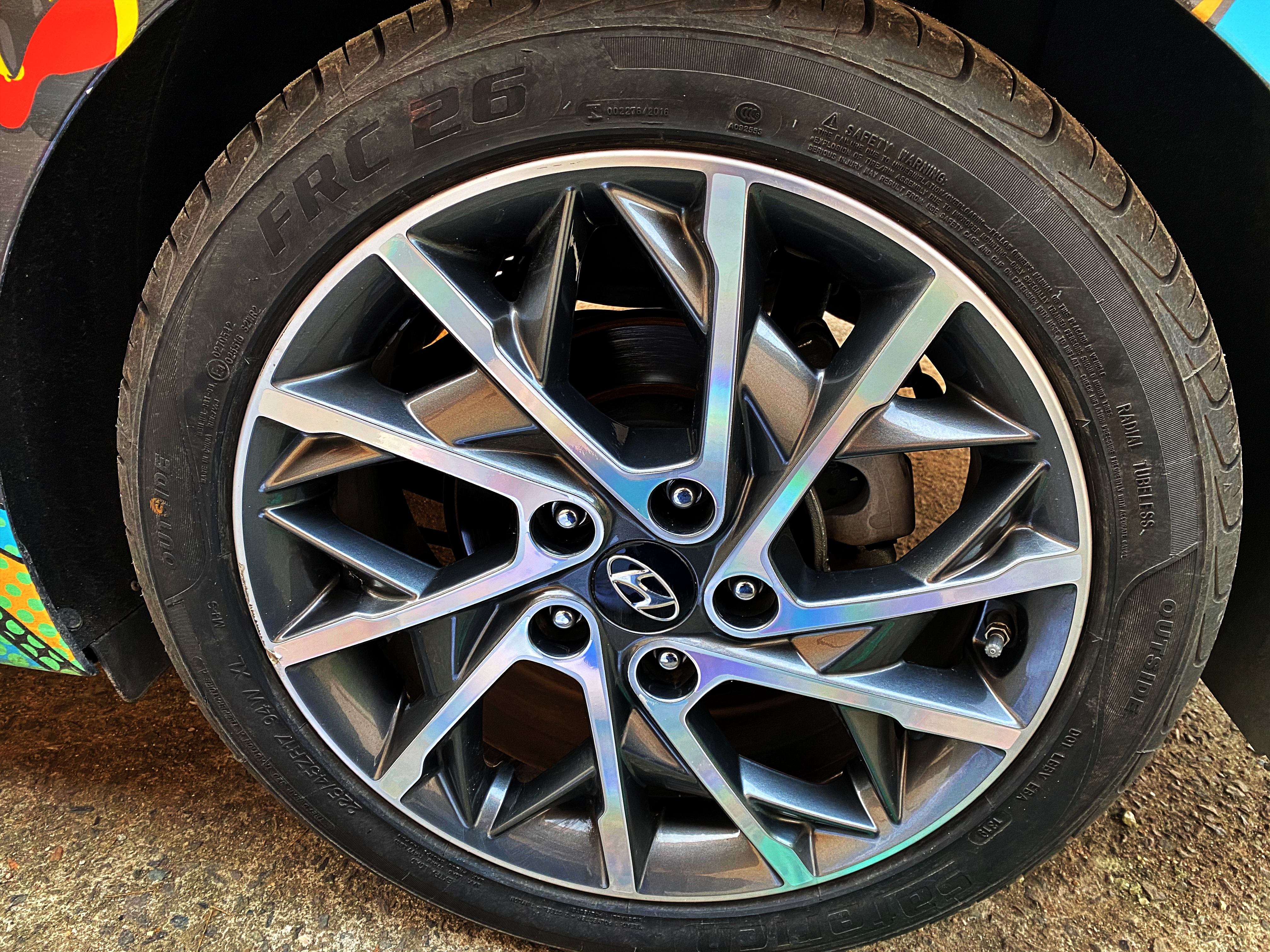 다만, 현재 운전석 뒷바퀴는 기스가 있습니다. 찍힌 부분도 있고요. 대체 왜 그랬는지 기억은 나지 않습니다만 아마 언젠가 밟은 요철 때문에 이런 일이 벌어지지 않았나 싶습니다. 그 2019년 봄에 카이스트에 가서 연석을 올라타며 타이어를 찢어먹었던 자리의 휠은 의외로 멀쩡합니다.