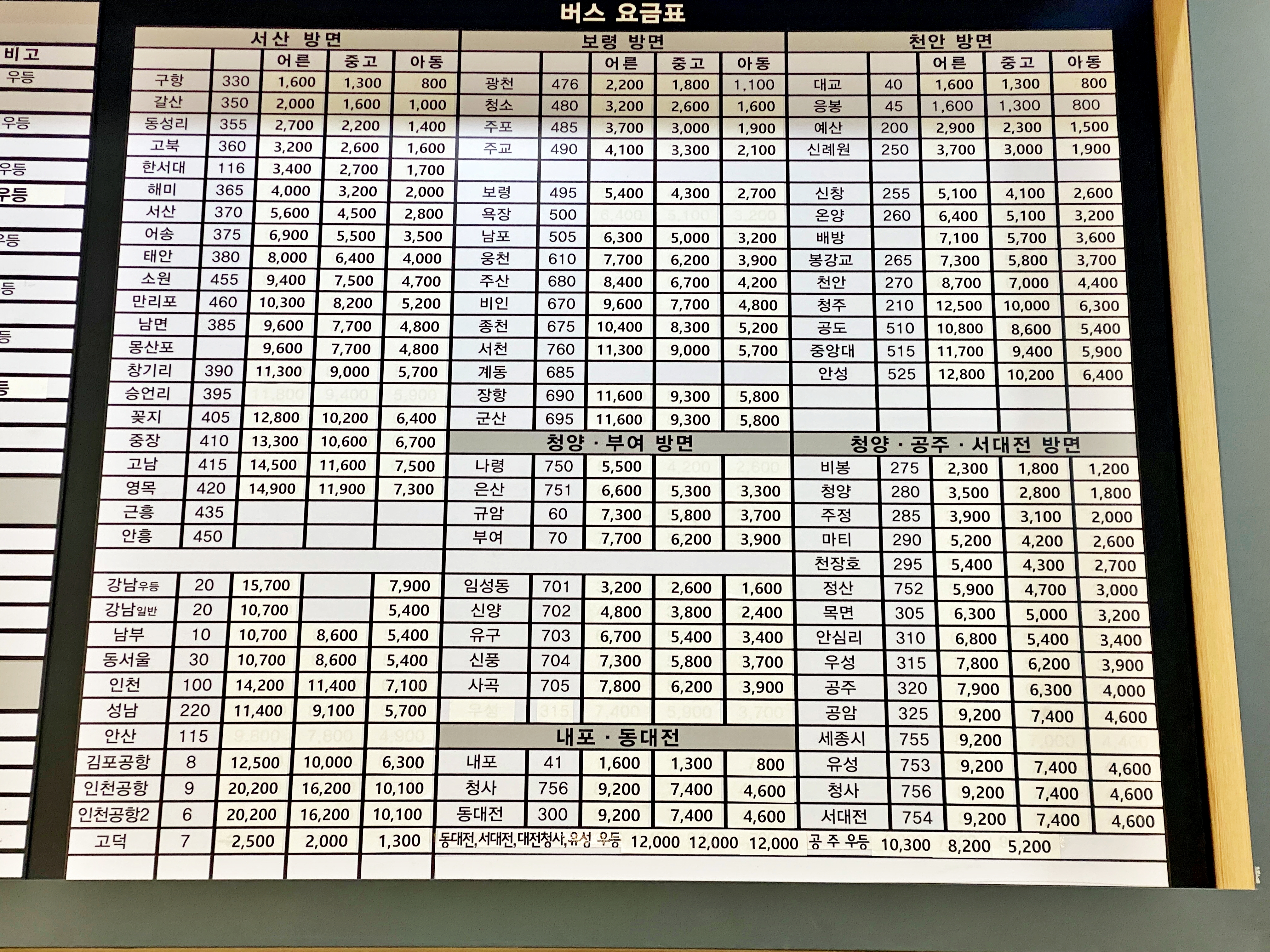 오랜만에 홍성터미널에 방문한 기념으로 시간표를 보고 왔습니다.