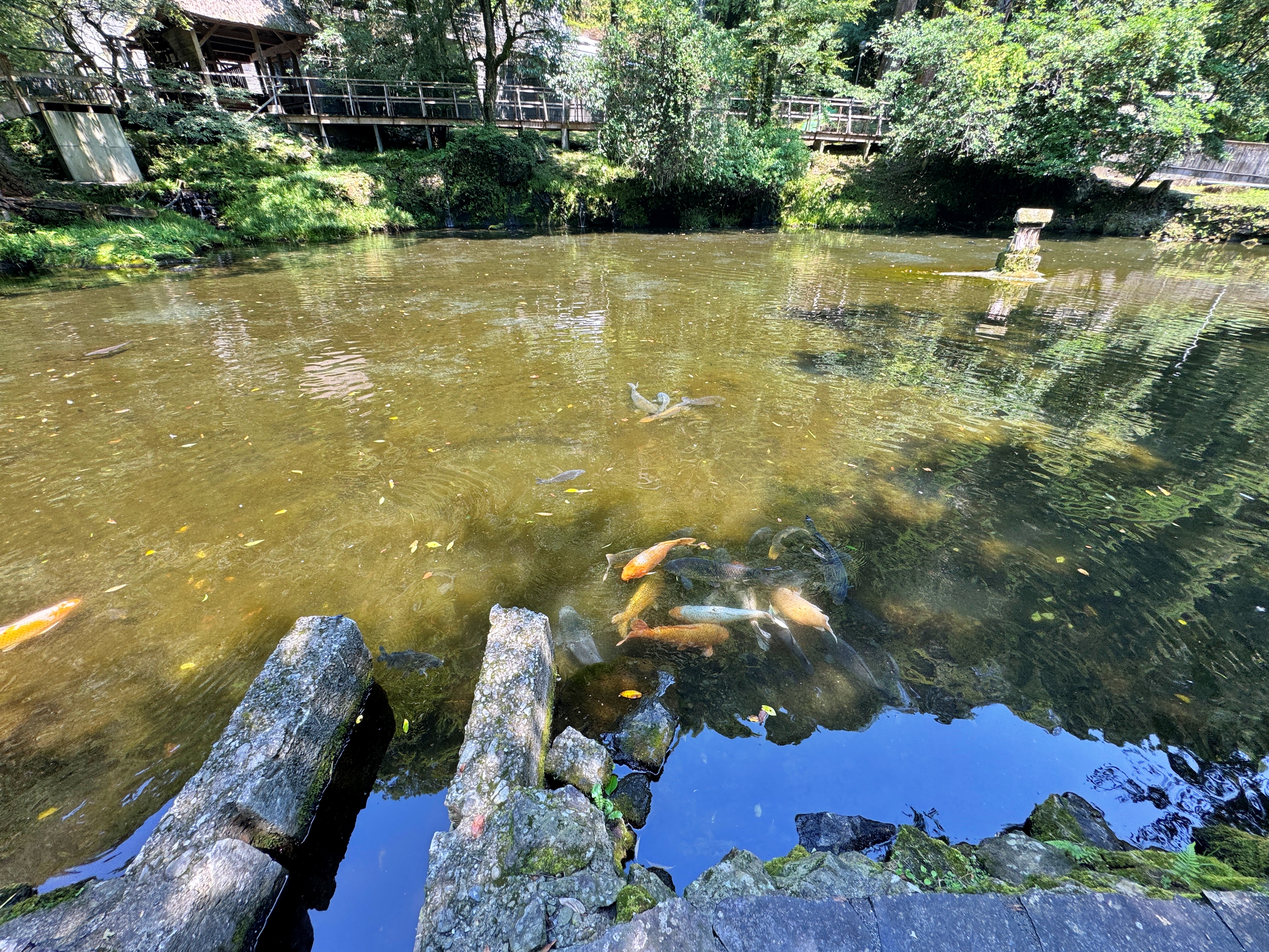 조금 더 걸어가니 작은 연못이 있고, 100엔에 잉어 먹이를 팔고 있더군요.