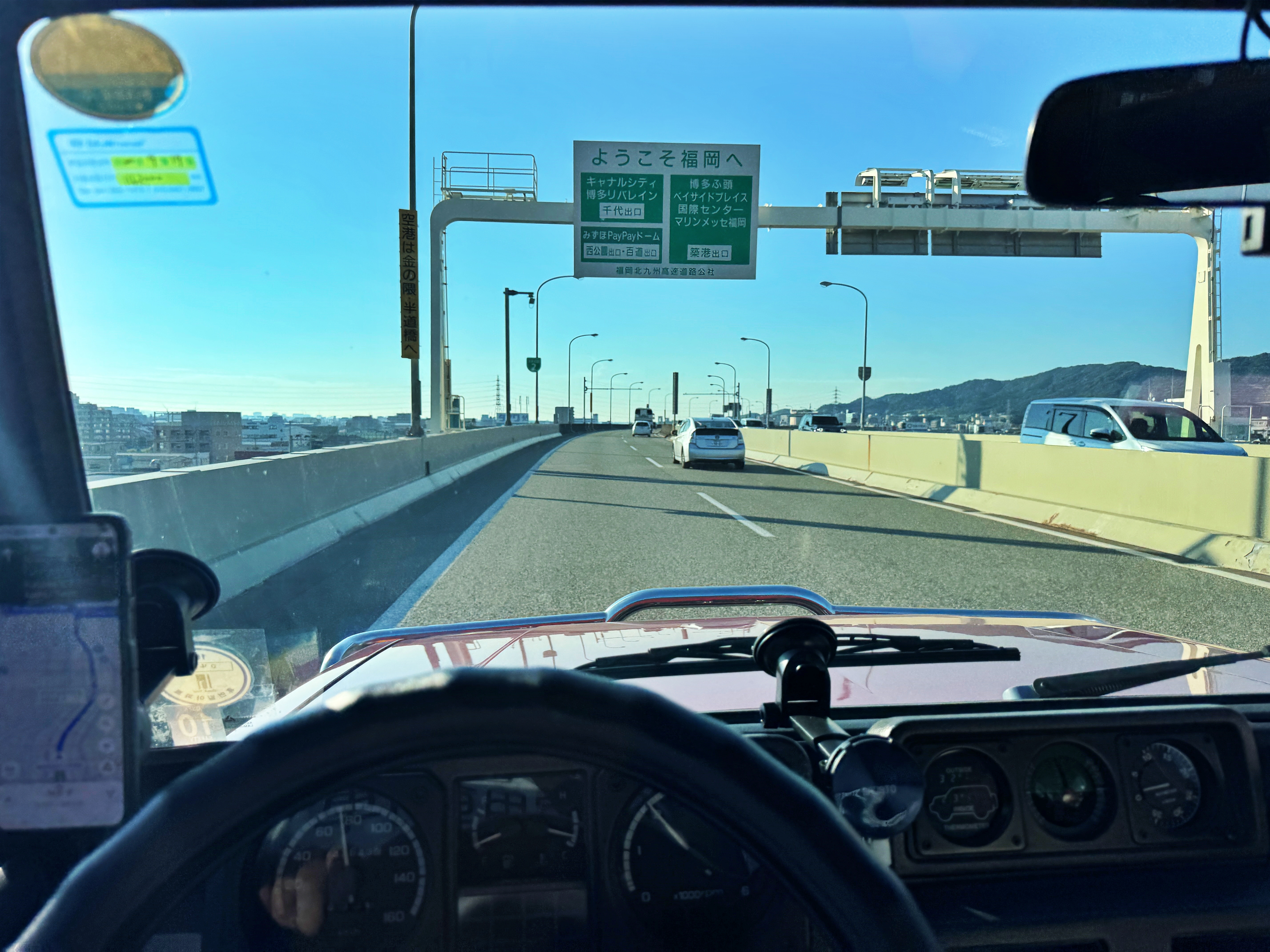 큐슈고속도로에서 후쿠오카 도시고속도로로 갈아타고 후쿠오카 시내로 들어갑니다. 이 도시고속도로는 매우 익숙합니다. 이 익숙한 도로에 제 차를 타고 올 것이라곤 상상조차 하지 못했는데, 현실이 되었습니다.