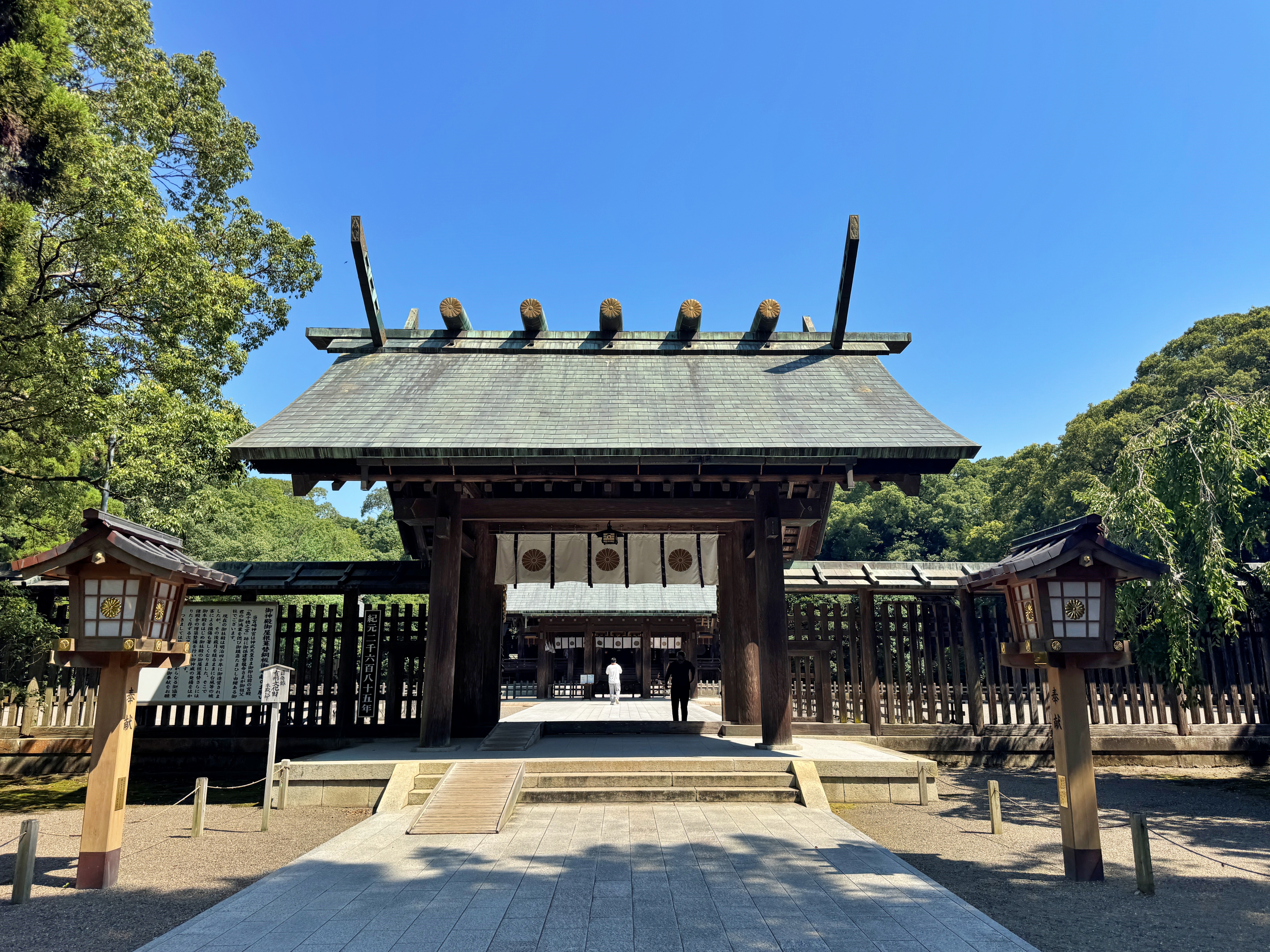 미야자키 신궁은 일본 건국신화의 태양신 아마테라스의 고손자이자 일본 초대 천황인 진무 천황을 모시는 신사입니다. 역사적 사료가 부족하여 중간에 실체에 대해 제대로 확인되지 않는 천황들도 있습니다만, 지금의 일본 황실의 계보를 타고 올라가 보면 맨 위에는 이 진무 천황이 있다고 합니다.