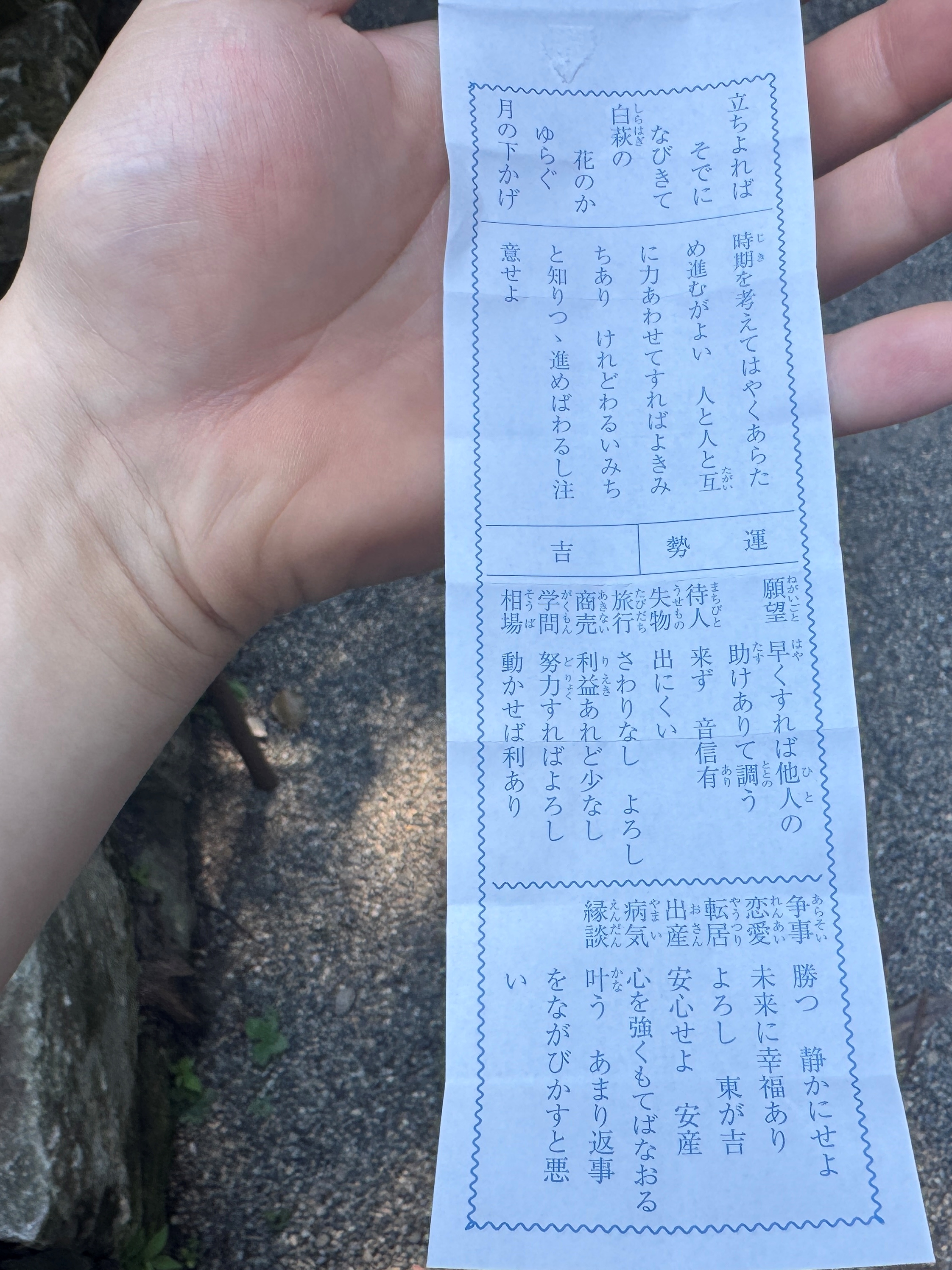 길(吉)이고 번역기 돌려서도 괜찮은 내용이니 다행이라 여기고 나무에 묶어놓고 왔습니다.