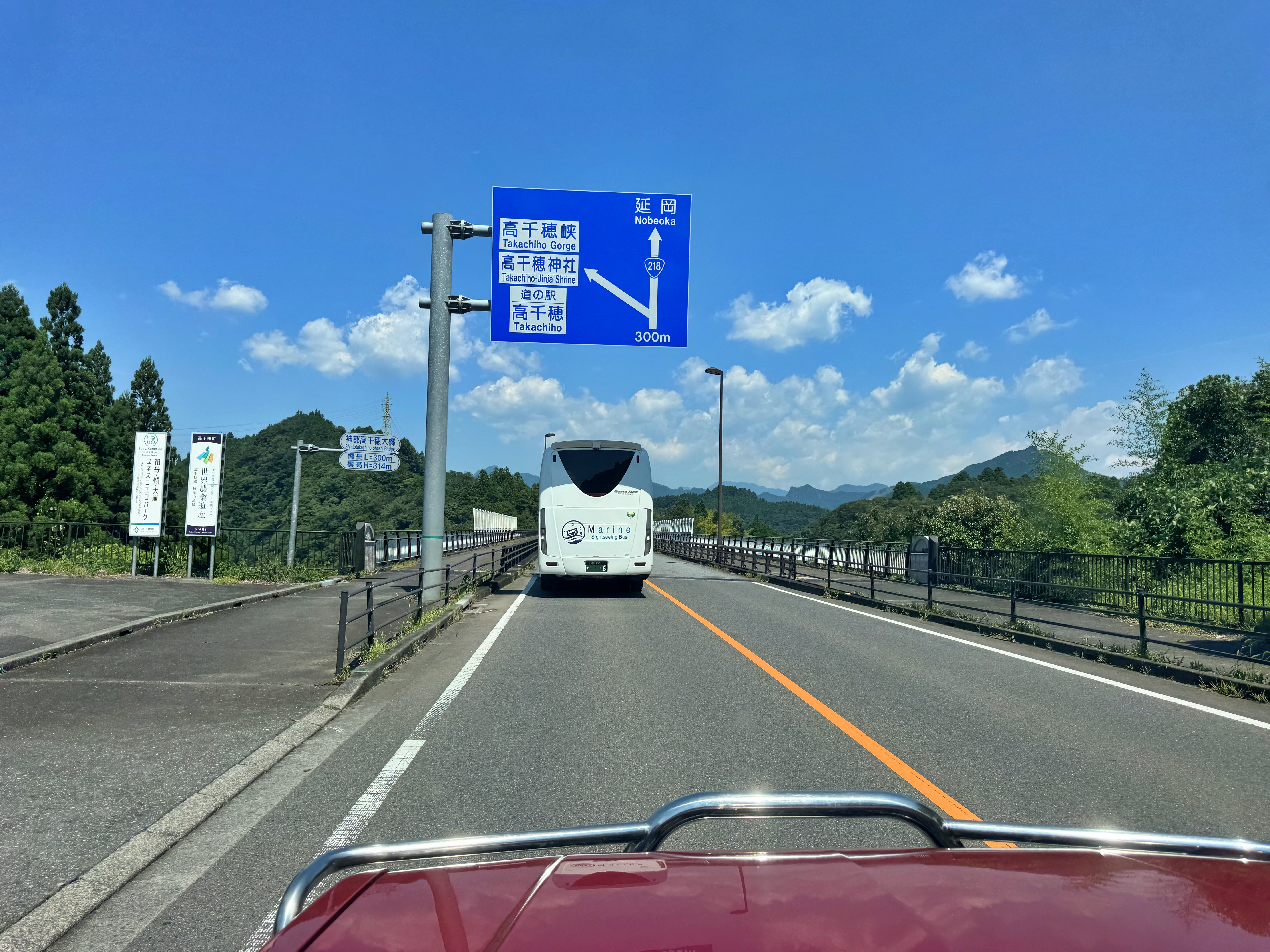 저 멀리 주차된 차가 보이네요. 이제 미야자키현 북쪽 끝의 타카치호초로 이동하려 합니다. '최애의 아이' 초반부에 아쿠아로 환생하기 전 고로가 근무했던 병원의 모티브가 된 병원이 존재하는 지역으로 작품의 배경이 되었던 동네이기도 한데, 같은 현내에서도 동남쪽 끝에서 서쪽 끝인지라 시간은 약 두 시간 정도 소요되었네요.