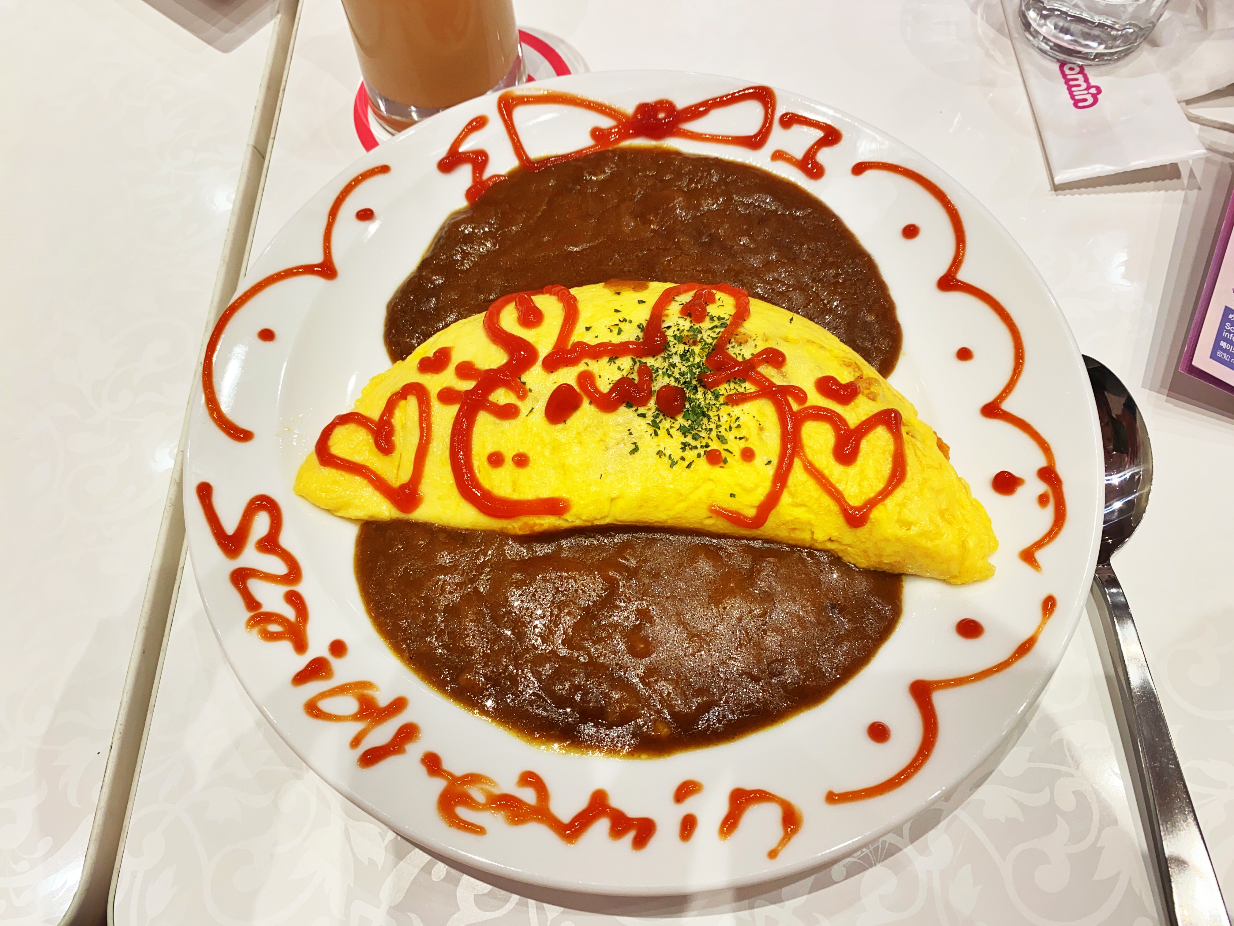 오므라이스를 선택했습니다. 그림으로 어떤 걸 그려주냐고 물어보기에 아무거나 그려달랬더니 토끼와 곰을 얘기하네요. 우사기를 그려달라고 하니 카와이하게 그려줬습니다.