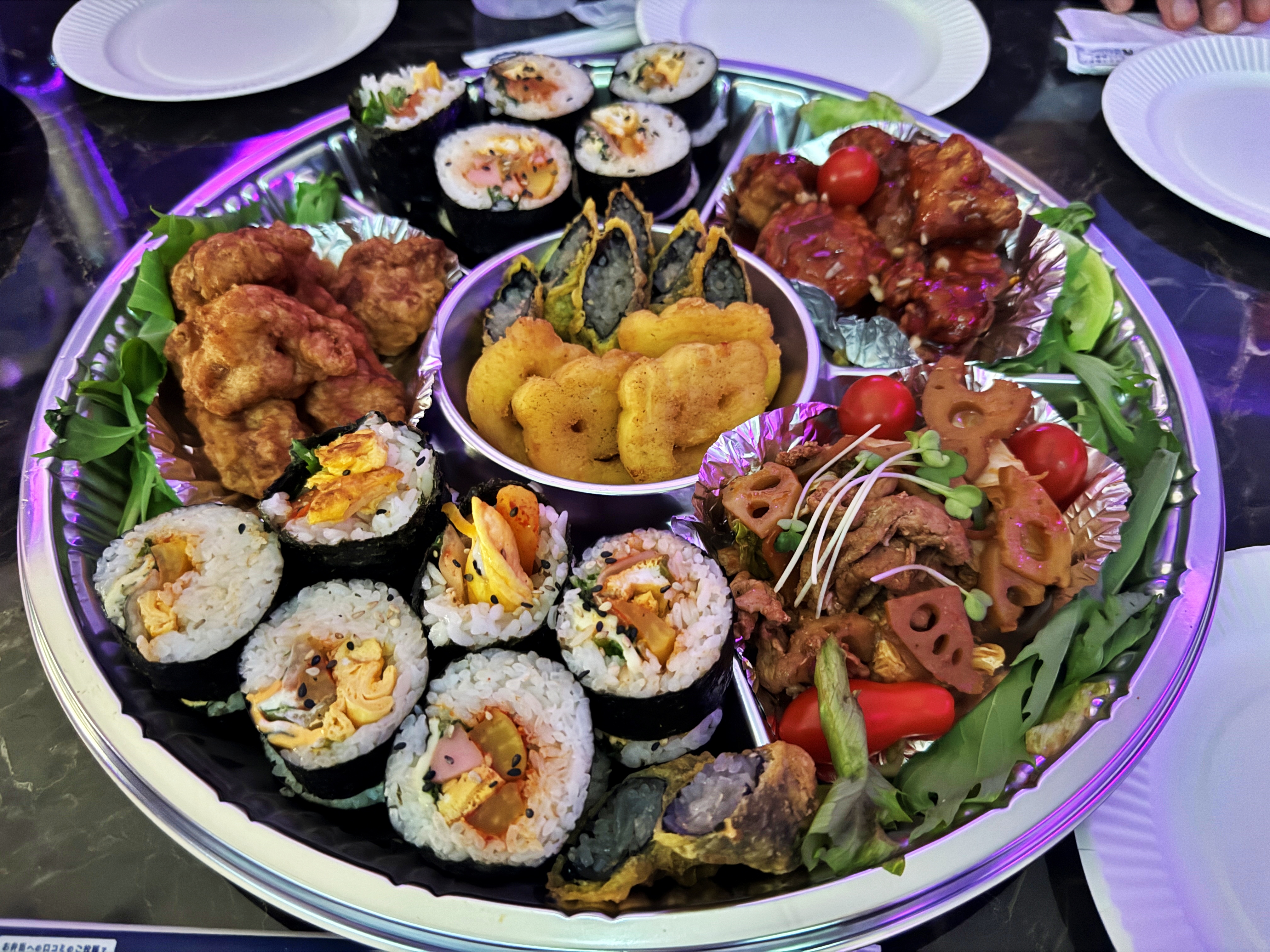 자리마다 식사가 놓여져 있었는데, 한국식 분식이었습니다.