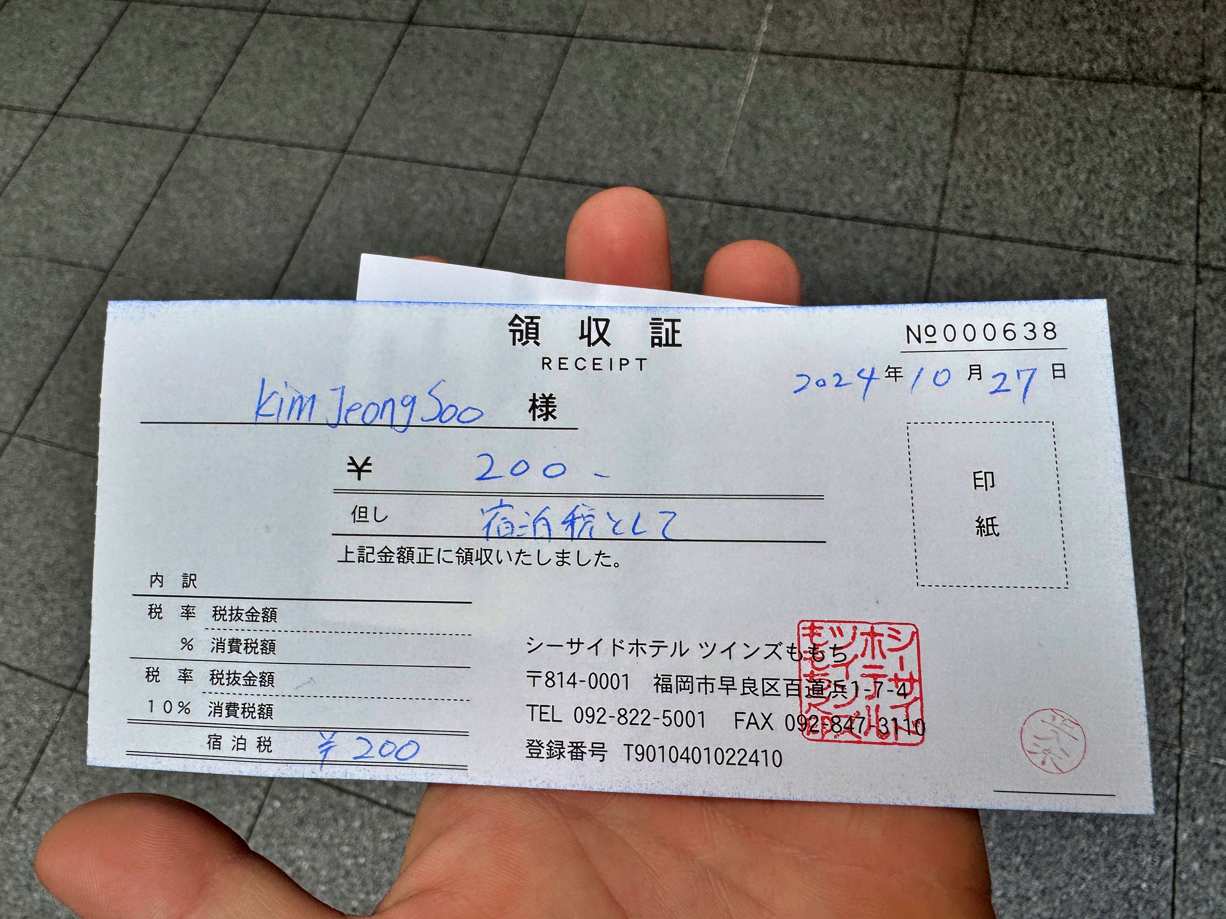 숙박세 200엔은 따로 지불했습니다.