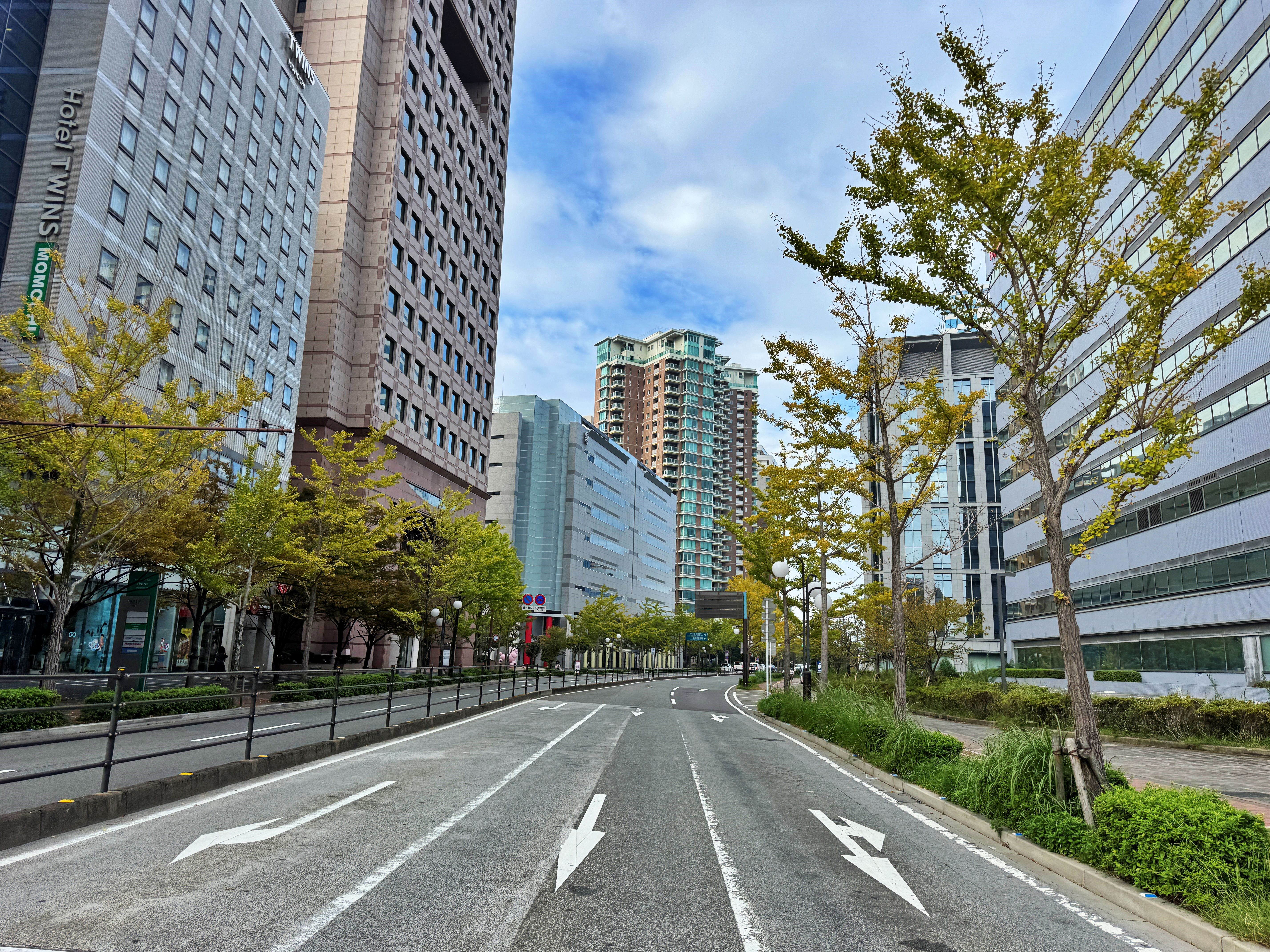 전날 일본시리즈 경기가 저 앞 돔경기장에서 있었더라면 뭔가 다른 분위기였겠죠. 업무지구와 주거지구 그리고 호텔과 병원이 소재해 있는 지역입니다.