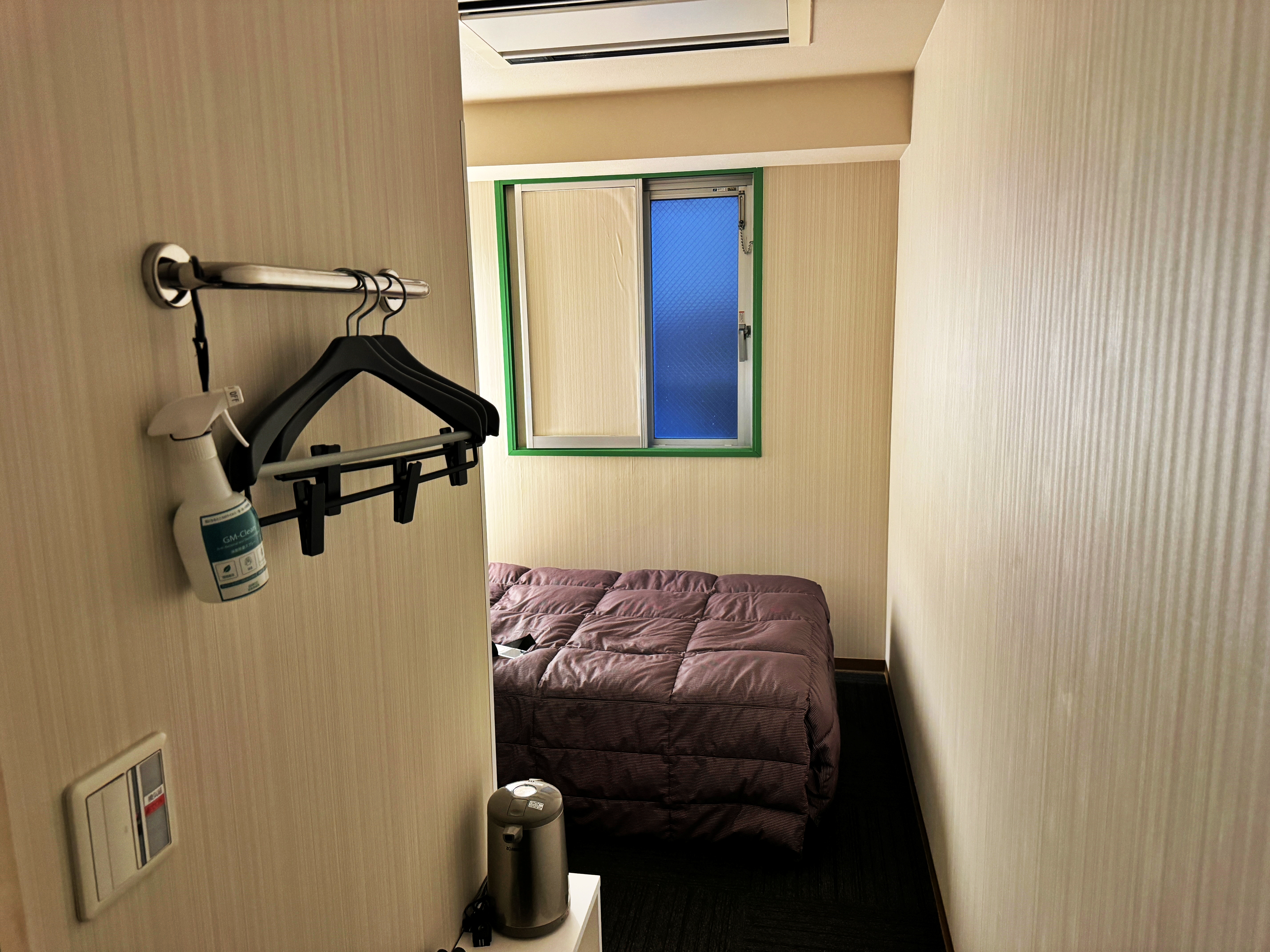 혼자 여행을 하는 여행객이 게스트하우스나 민숙 캡슐호텔 대신 돈을 조금 더 주고라도 비지니스 호텔을 오는 이유는 깔끔하면서도 혼자만의 공간에서 지내고 싶기에 그렇지 않나 생각됩니다. 딱 혼자 자고 일어날 수 있는 공간입니다. 조금 넓은 비지니스 호텔의 경우 테이블이 존재하는데 테이블은 없고 TV와 커피포트가 전부입니다. 화장실도 욕조도 협소했습니다.
