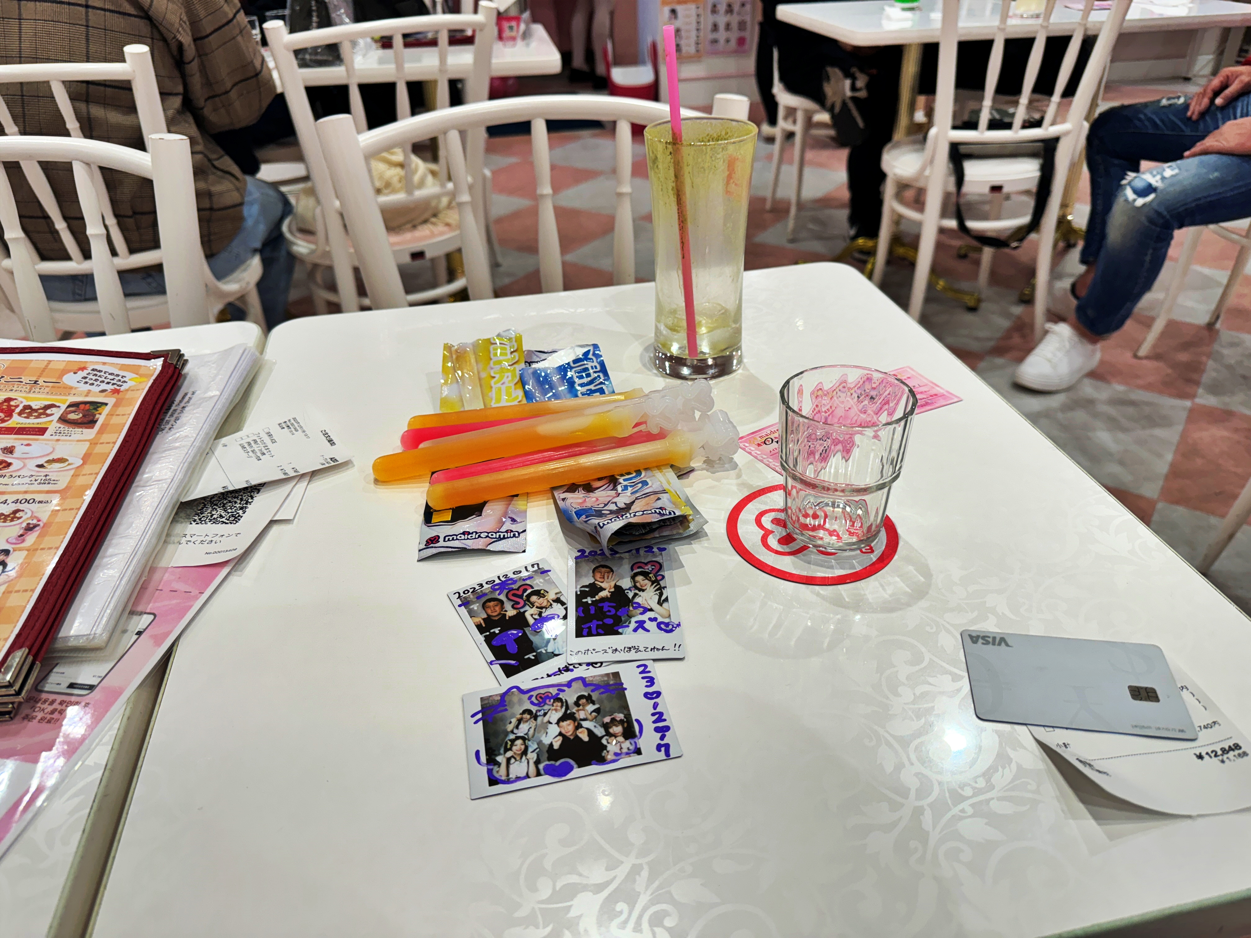 단체사진 하나 찍고 남은 체키권 두 장은 라이브를 진행했던 메이드와 촬영했습니다. 계산서에 적힌 금액은 12848엔. 재밌게 놀고 나왔습니다. 3일 연속으로 약빨 열심히 채웠고 그 약빨로 열심히 버텼네요.