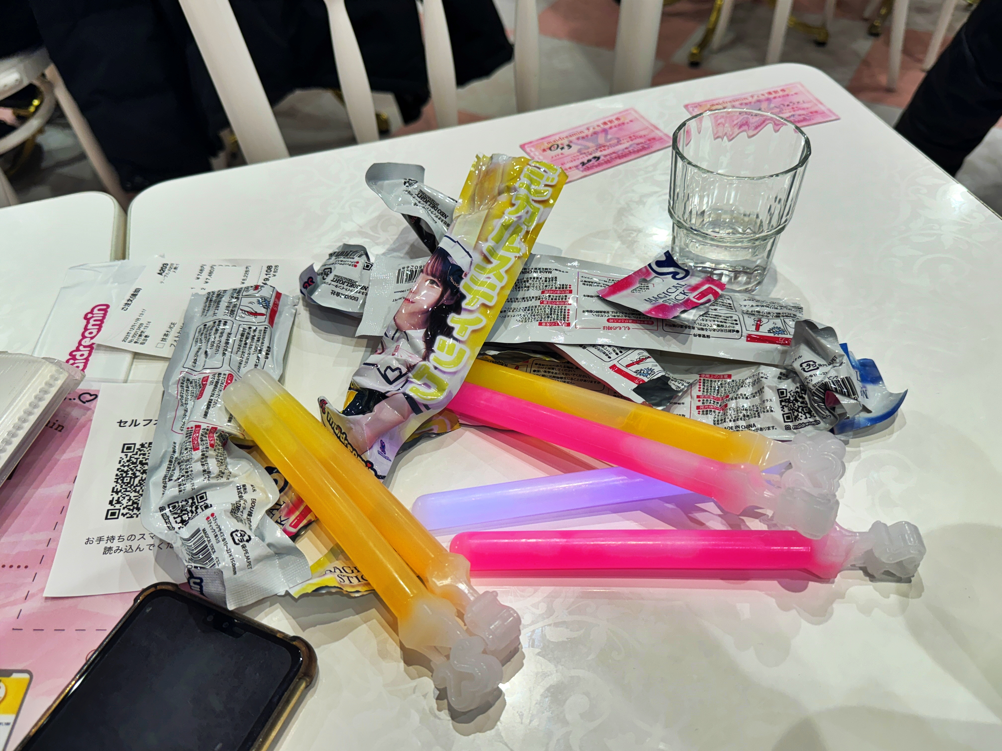 손님이 많아 정신없이 바빠 보여서 미안했습니다만, 음료 한 잔에 라이브가 포함된 세트만 세 개 주문했네요. 전날 라이브를 신청했다가 휴식시간에 걸려서 신청하지 못했던 메이드 한 명만 붙잡고 라이브를 시켰습니다. 추가 추가 또 추가해 주니 엄청 기뻐하네요. 한국어 버전의 트와이스(TWICE) T.T와 지하아이돌 아이라이프(ilife)의 아이돌 라이프 스타터팩(アイドルライフスターターパック)과 요아소비(YOASOBI)의 아이돌(アイドル)을 신청합니다. 특히 이 메이드의 요아소비 아이돌은 제가 처음 신청한다고 하더군요.