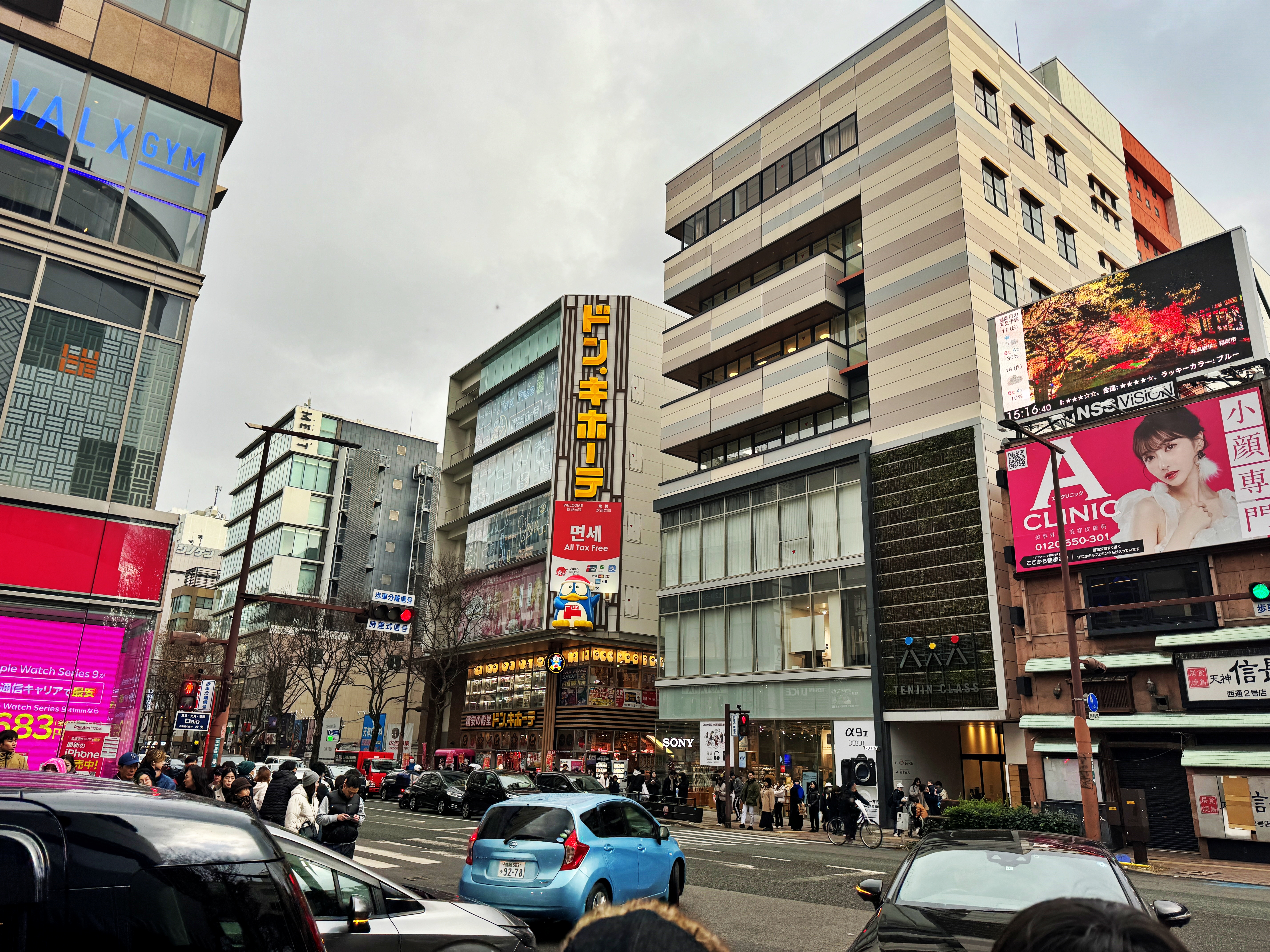 다음 목적지는 돈키호테 텐진본점. 대신 구입해 달라는 사케와 기타 잡다한 물건들을 구입하고 바로 공항으로 이동하려 합니다. 아 차는 주차장에 넣어놓고 도보로 이동하네요.