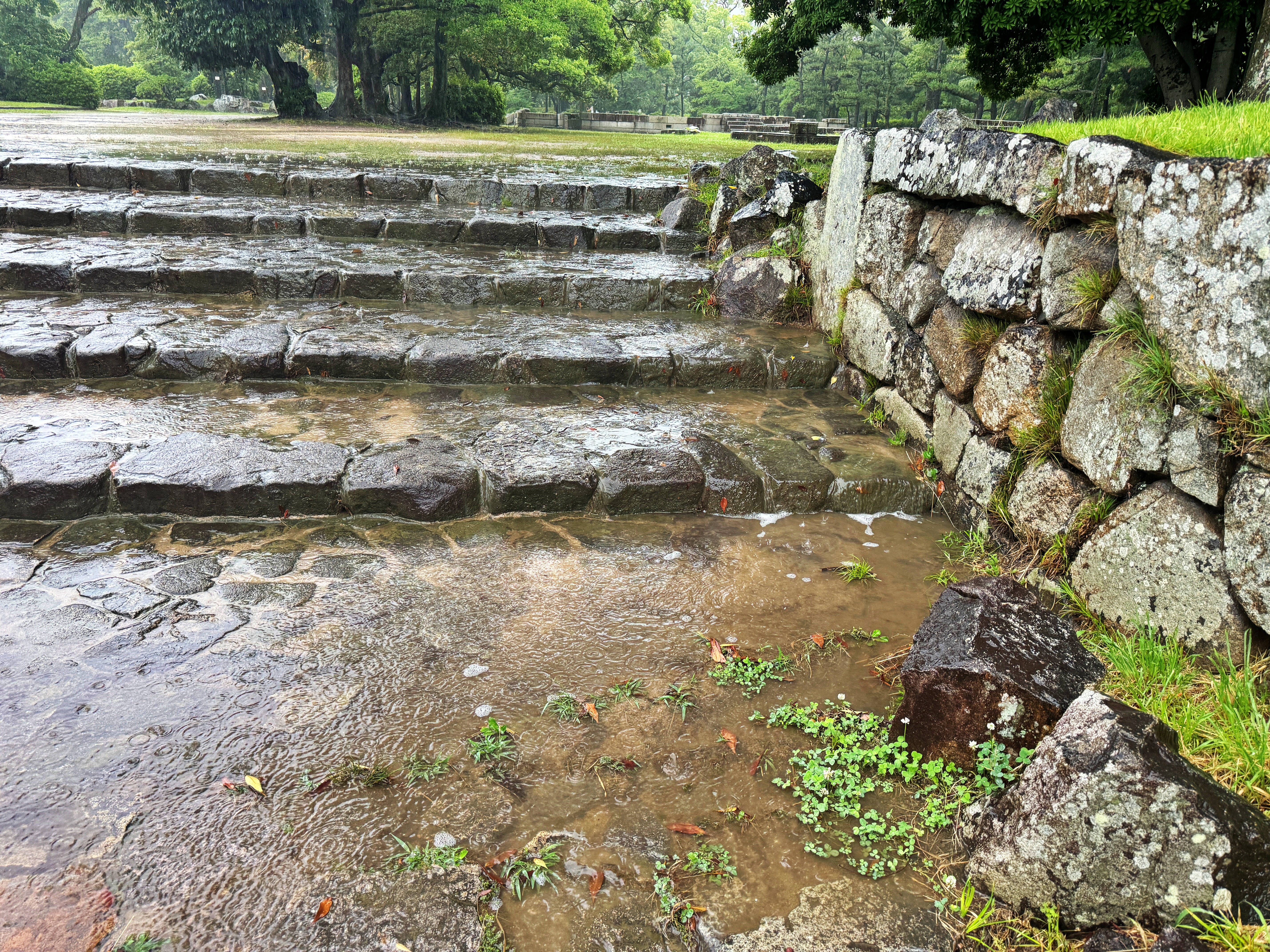 성으로 들어가는 길목 곳곳에 빗물이 고여있습니다.