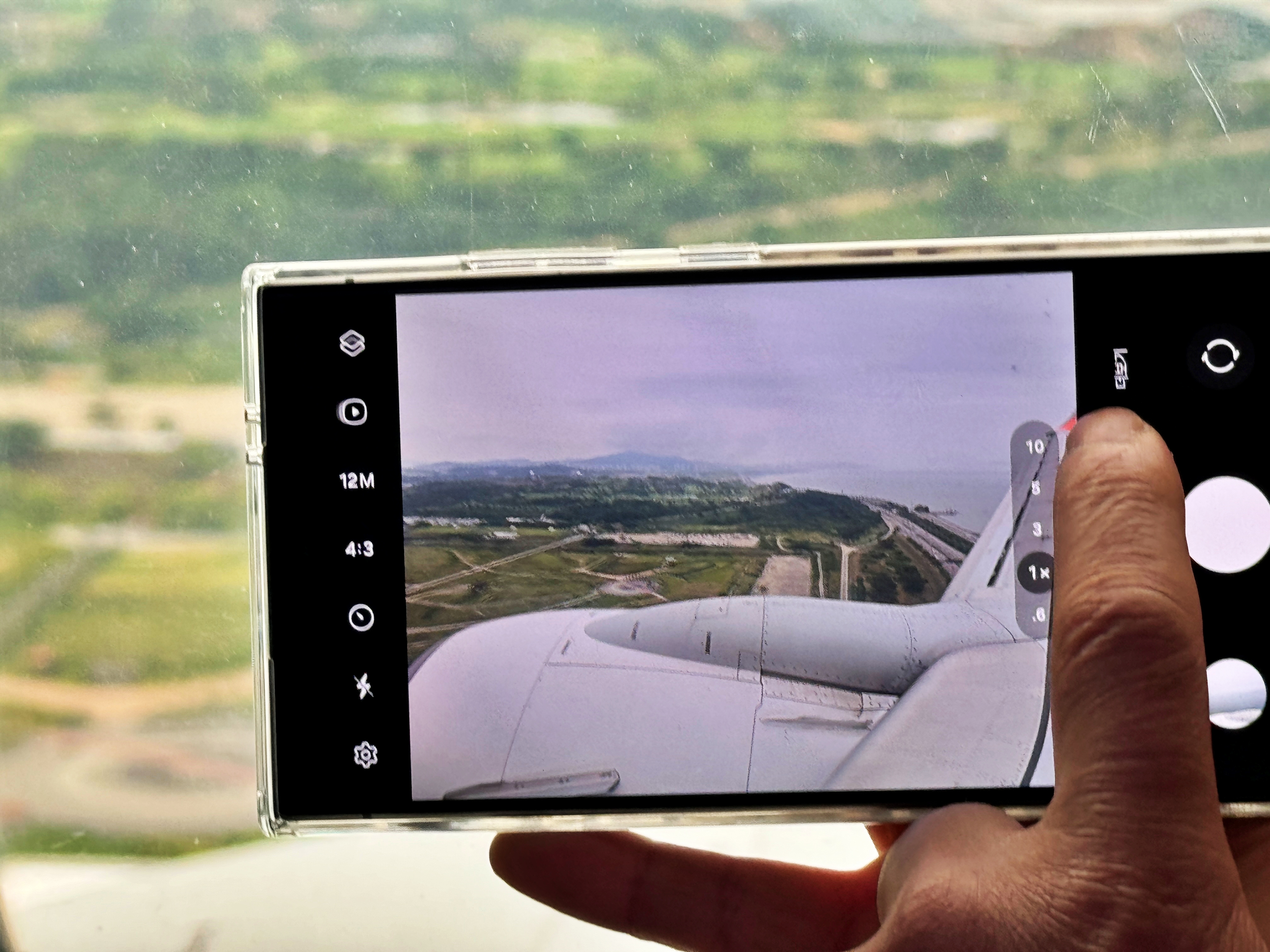 이륙하는 사진을 찍는 핸드폰을 한번 더 촬영했습니다.