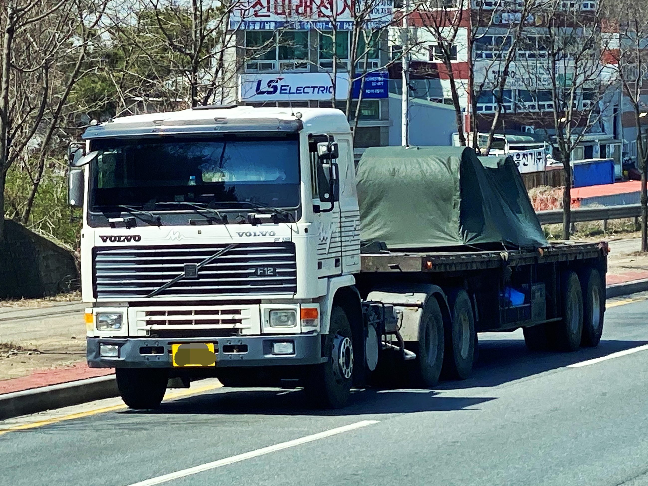 깍두기처럼 각진 외관 탓에 흔히 각볼보라 부르는 F시리즈 모델이 수입되었는데, F 뒤에 붙는 숫자는 배기량을 의미합니다. 국내에는 12리터급 모델을 대우자동차가 수입하여 판매했으며 초기에는 356마력 엔진의 21.5톤 덤프트럭이 이후 트랙터 모델이 수입되었습니다. 트랙터는 당시 기준으로 고성능인 400마력 모델이 판매되었습니다. 지금 신차를 놓고 보자면 국산 트럭들도 수입 트럭과 비등한 출력을 내는 엔진이 적용되곤 합니다만, 당시만 하더라도 수입트럭은 국산 대비 압도적인 출력을 자랑했습니다.