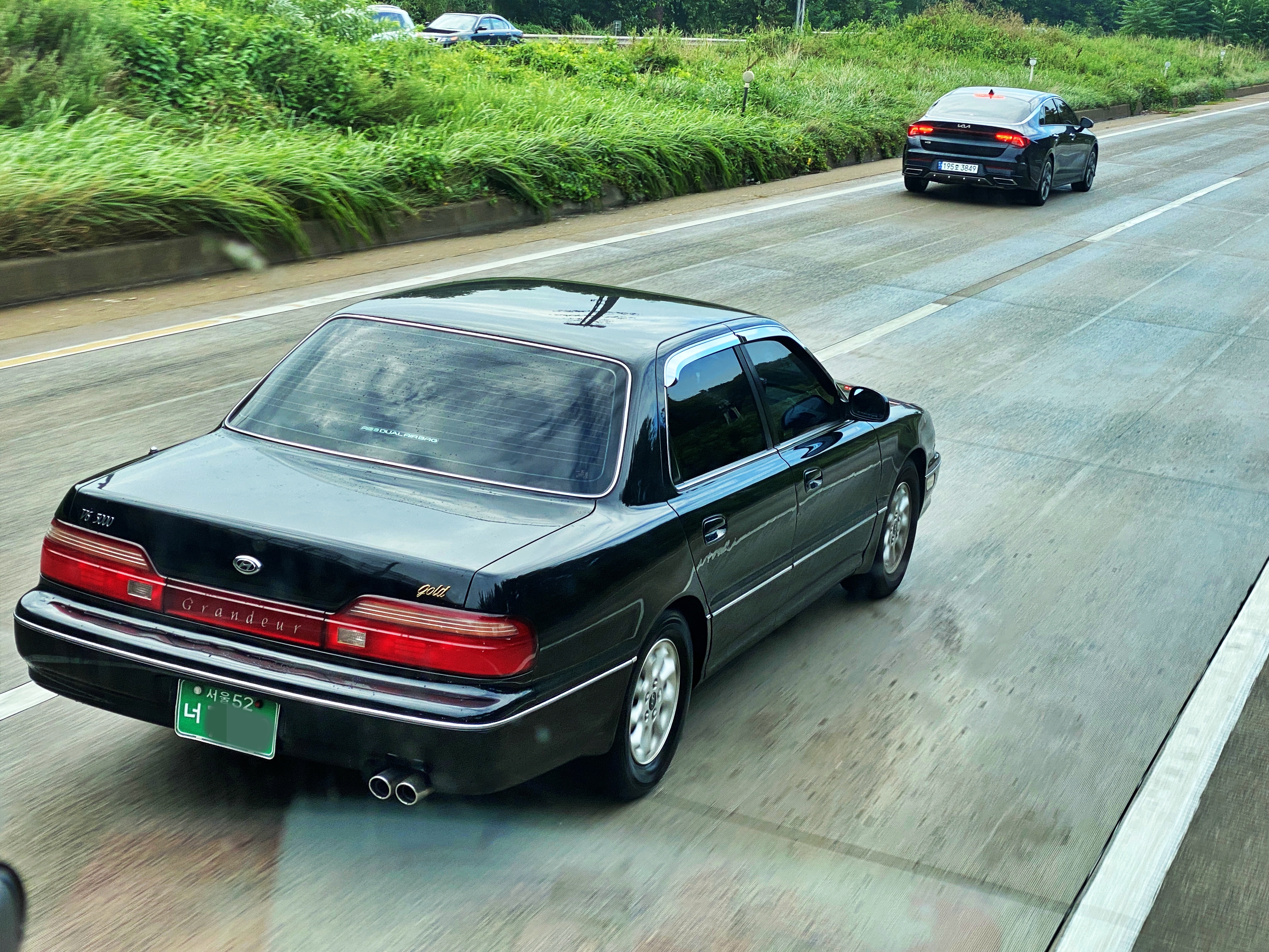 그간 올드카 목격담에서 뉴그랜저는 많이 다뤘던 차량이고 판매량도 판매기간도 길었던 편이라 요즘도 간간이 보이는 차량이긴 합니다만, 이 차량은 서울특별시 강남구에서 발급되었던 '서울 52' 지역번호판을 그대로 유지하고 있었습니다. 97년 7월에 등록된 차량인데, 그간 주인이 바뀌지 않았더라면 말 그대로 진짜 부자가 신차를 출고하여 지금껏 운용하는 차량이라는 이야기겠죠.