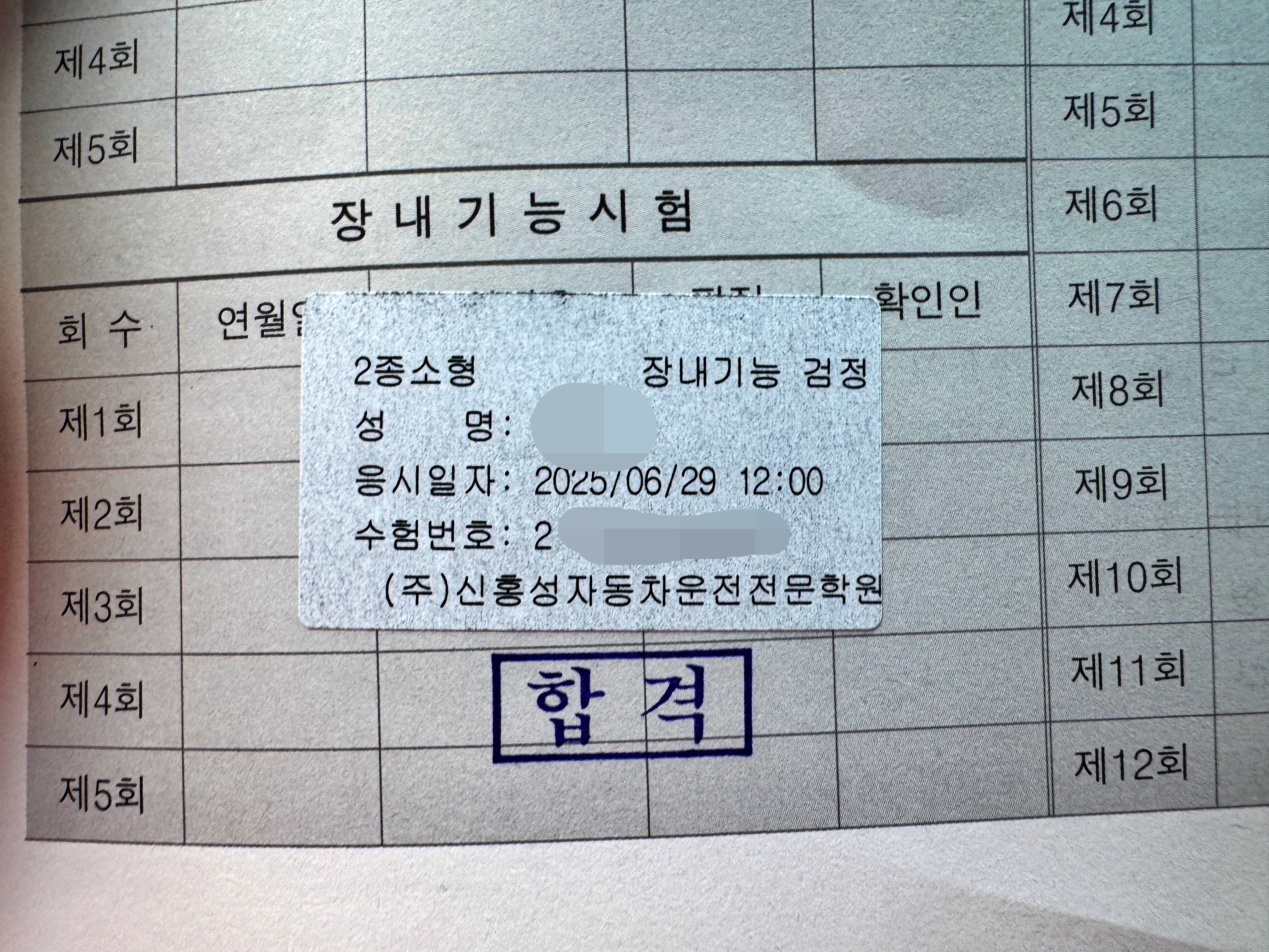 강습 전에 다시 감이나 잡을겸 타고 시험 시간이 왔네요. 시험 전까지 익숙하게 탔던지라, 익숙하게 다시 시험장을 한 바퀴 돌고 특이사항 없이 바로 합격하게 되었습니다.