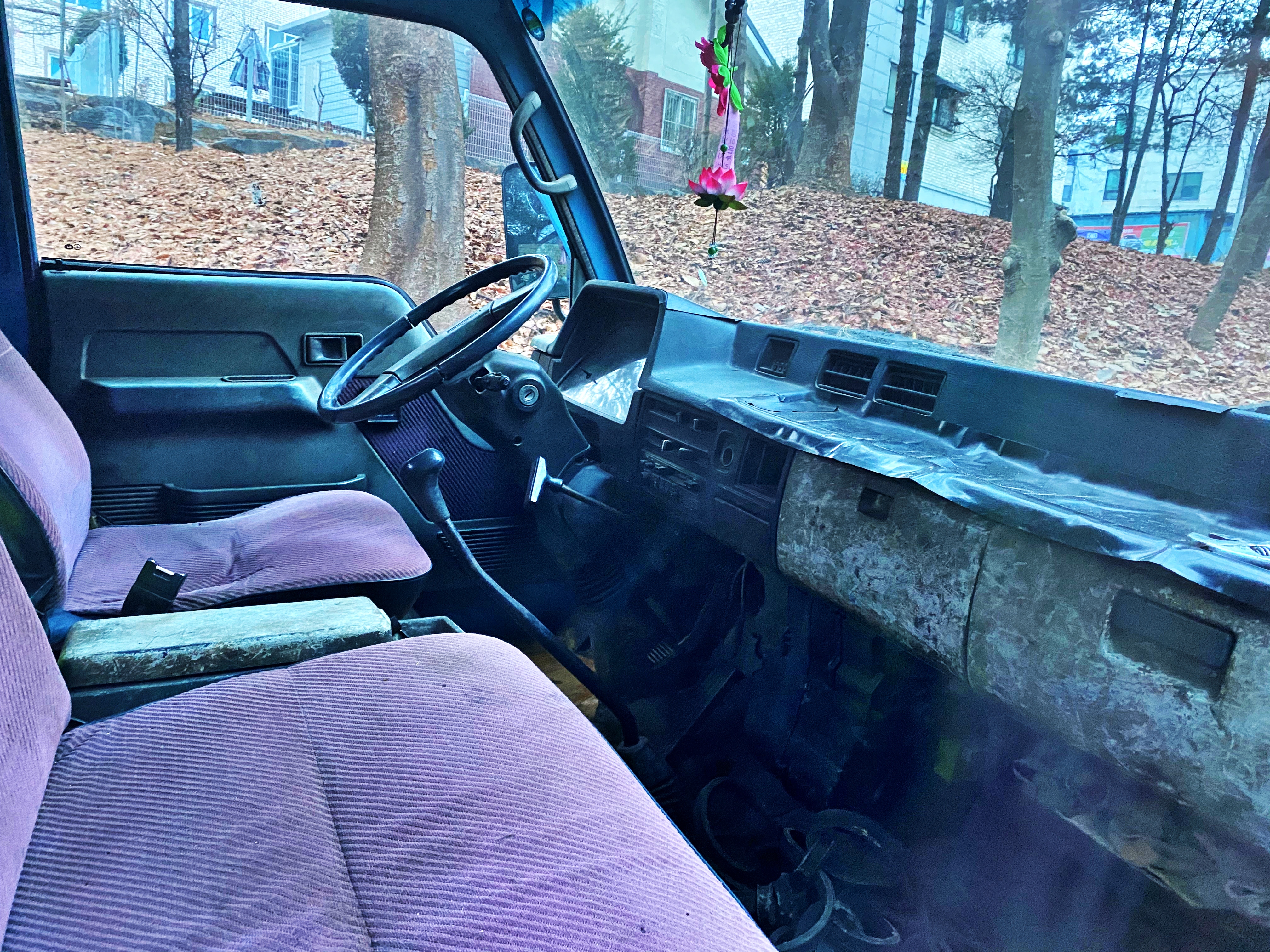 핸들의 플라스틱은 다 닳고 깨져버렸습니다. 대시보드 역시 다 삭아서 하얗게 변색되었고 여기저기 긁혀버린 흔적이 보이네요. 뭐 그것 말고는 따로 깨지거나 작동이 되지 않는 기능은 없어보입니다. 아마 이 상태로 남은 차생을 보내지 않을까 싶습니다.