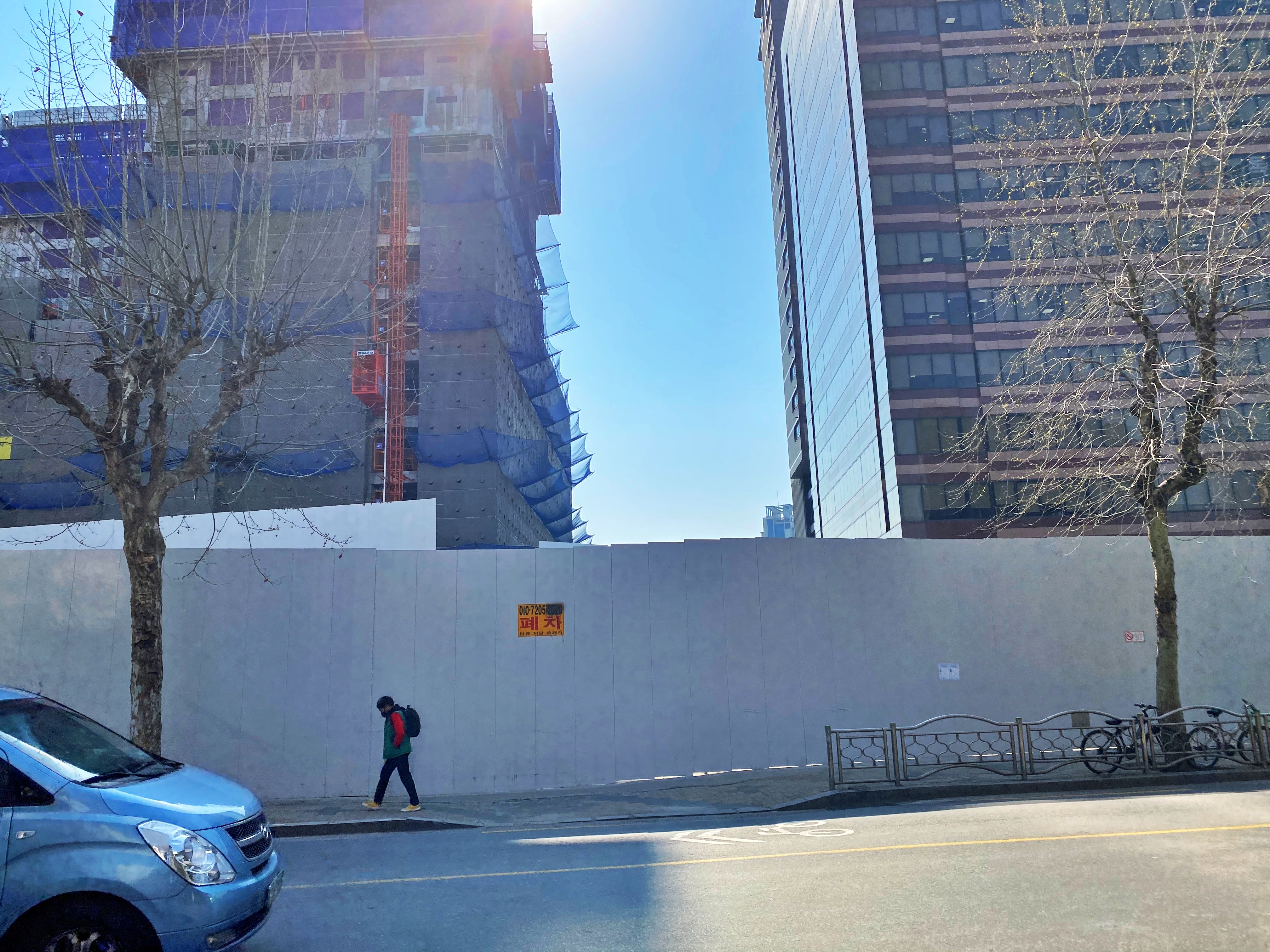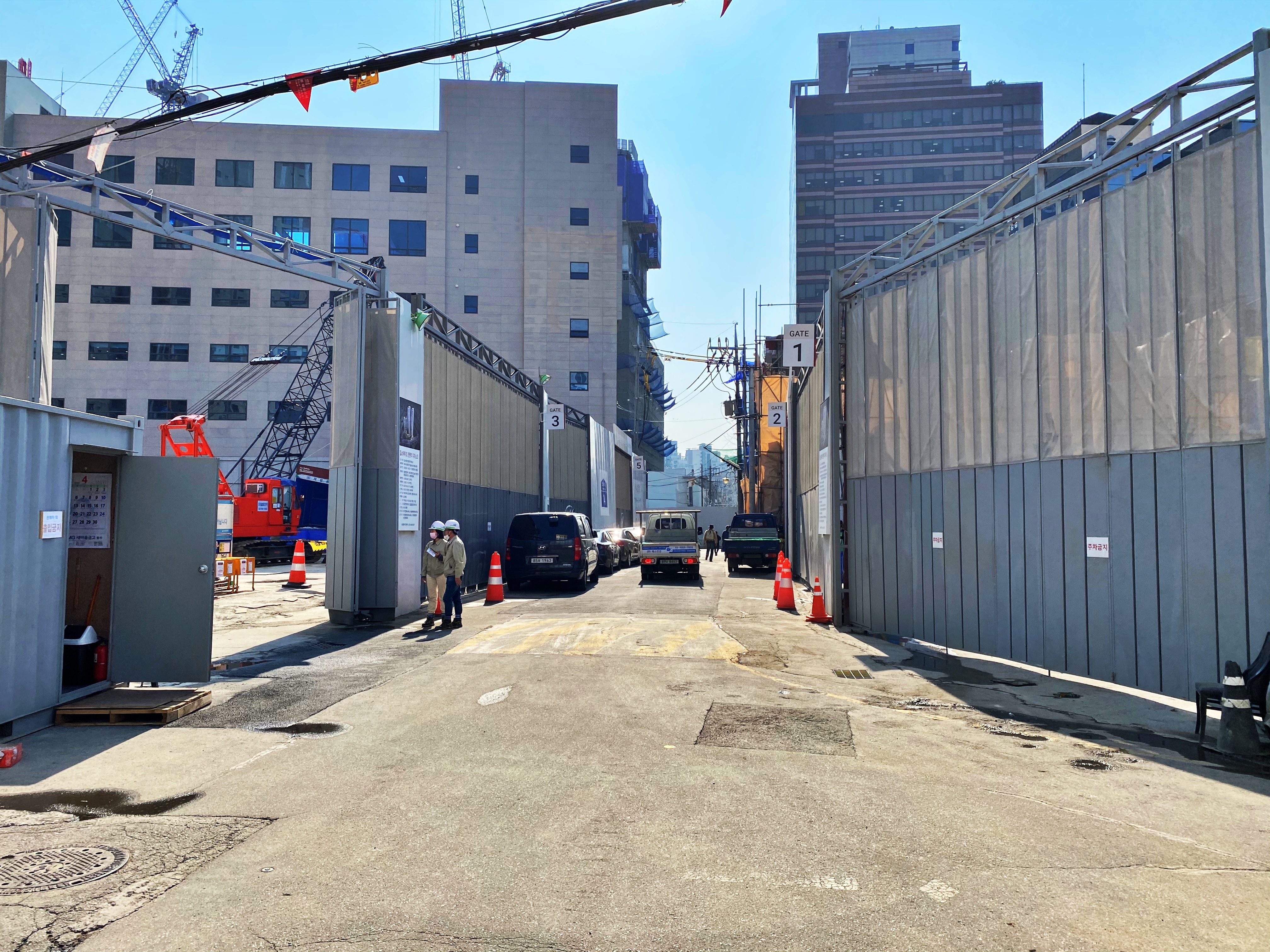 성바오로병원 본관과 별관이 마주보고 있던 자리는 공사장 출입문이 마주보고 있습니다.