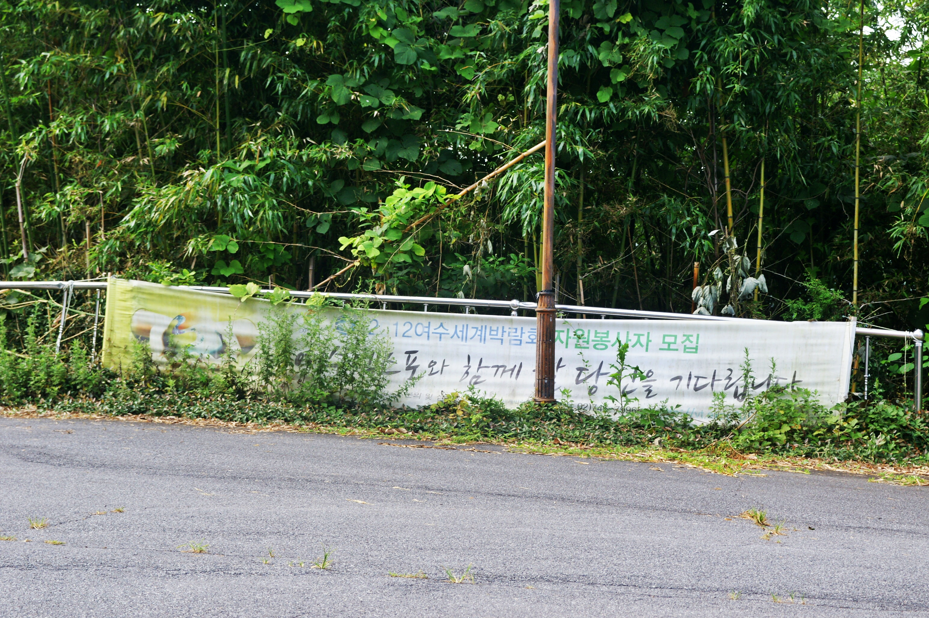 한참 여수엑스포가 개최되던 시기로 기억합니다. 이 현수막은 당연하게도 엑스포 한참 전 2011년 연말즈음에 걸어둔 현수막이겠지요. 부실대학으로 낙인찍혀 퇴출당하기 직전임에도 편견없이 자원봉사의 문은 열려있던것으로 보입니다.
