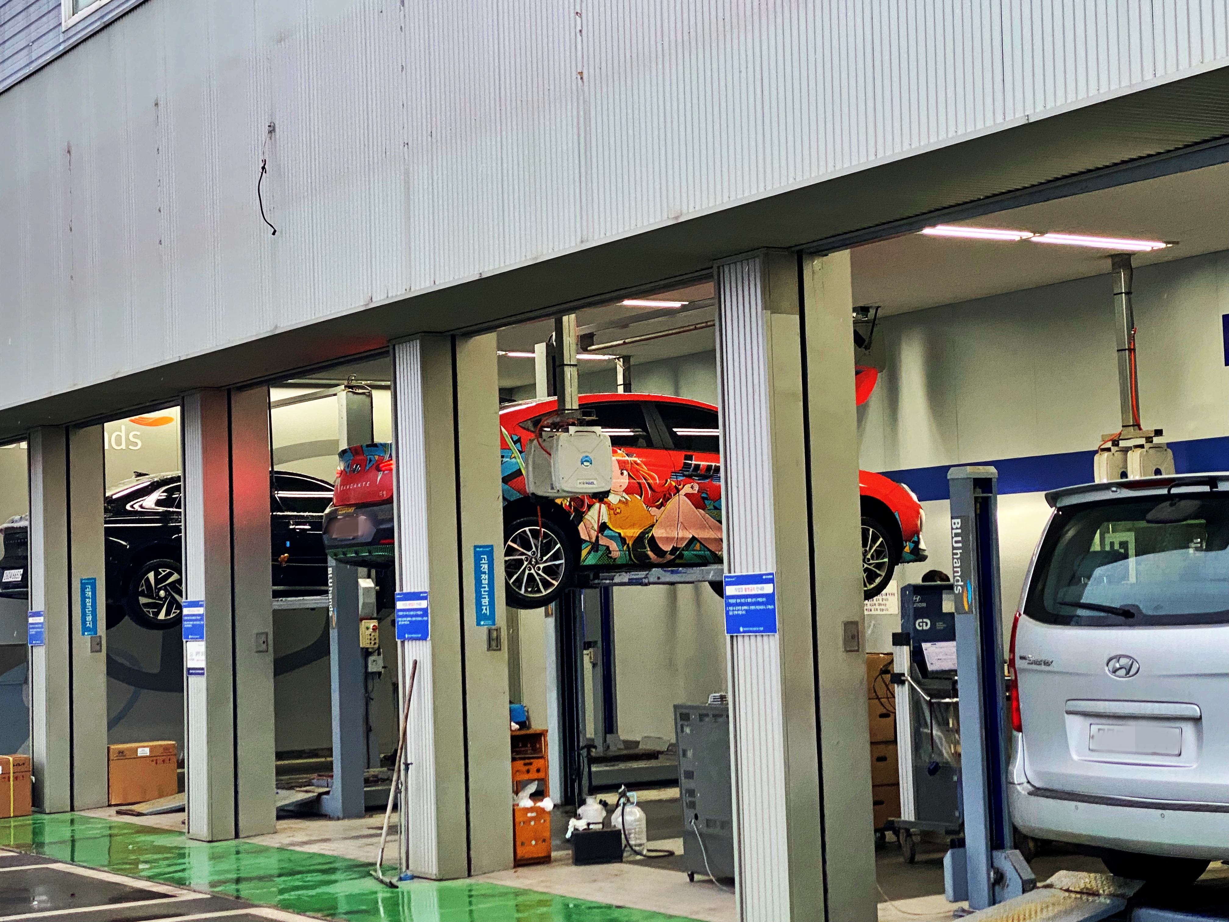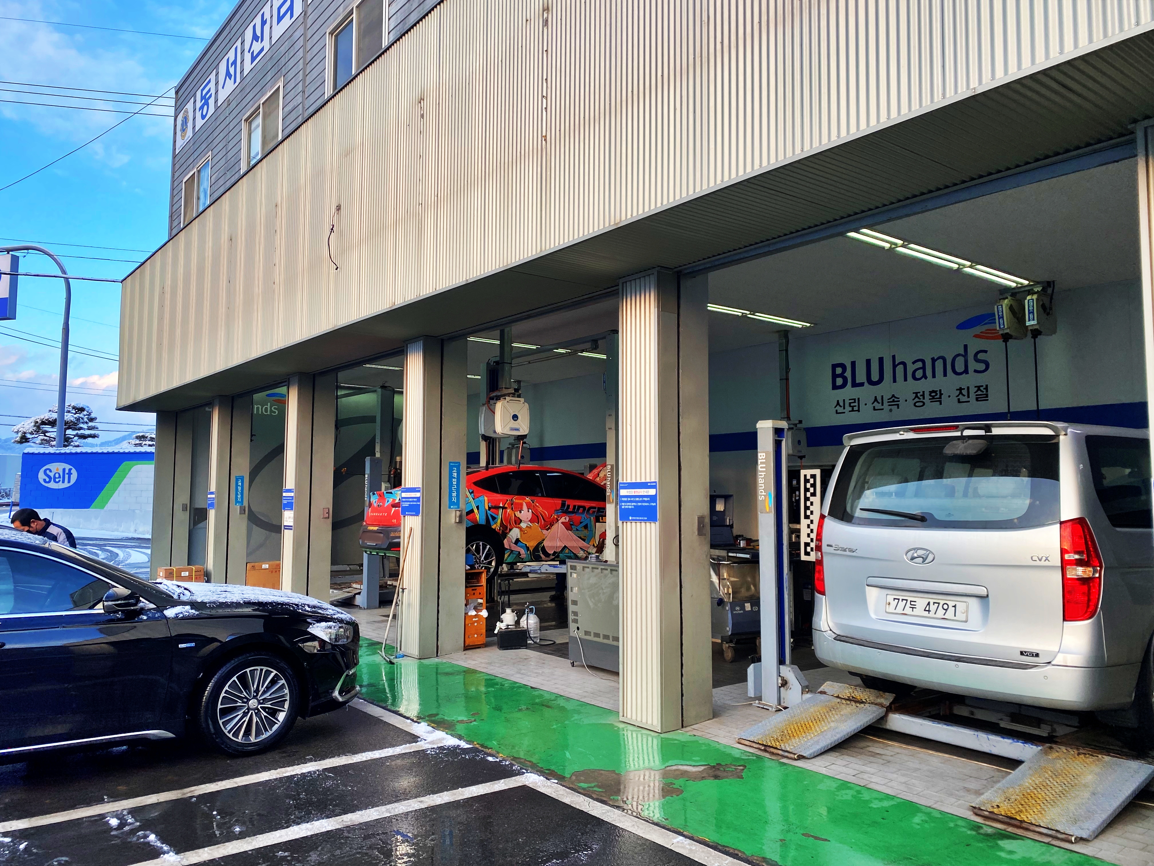 서산 시내에 블루핸즈 간판을 달고 있는 정비소들은 모두 리프트가 다섯 대 이상입니다.