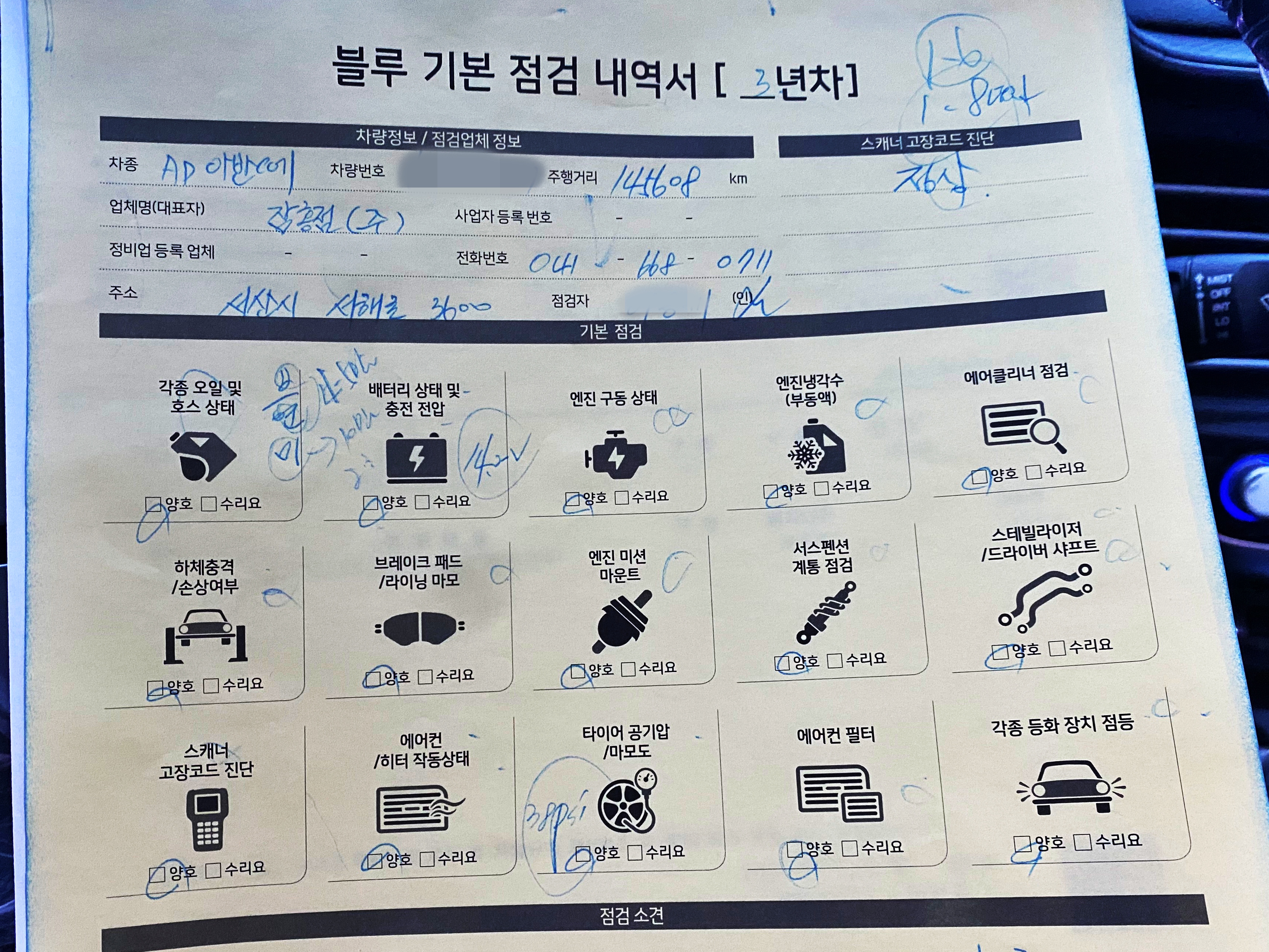 그리고 해가 바뀌면 소멸되는 블루기본점검도 함께 받기로 합시다.