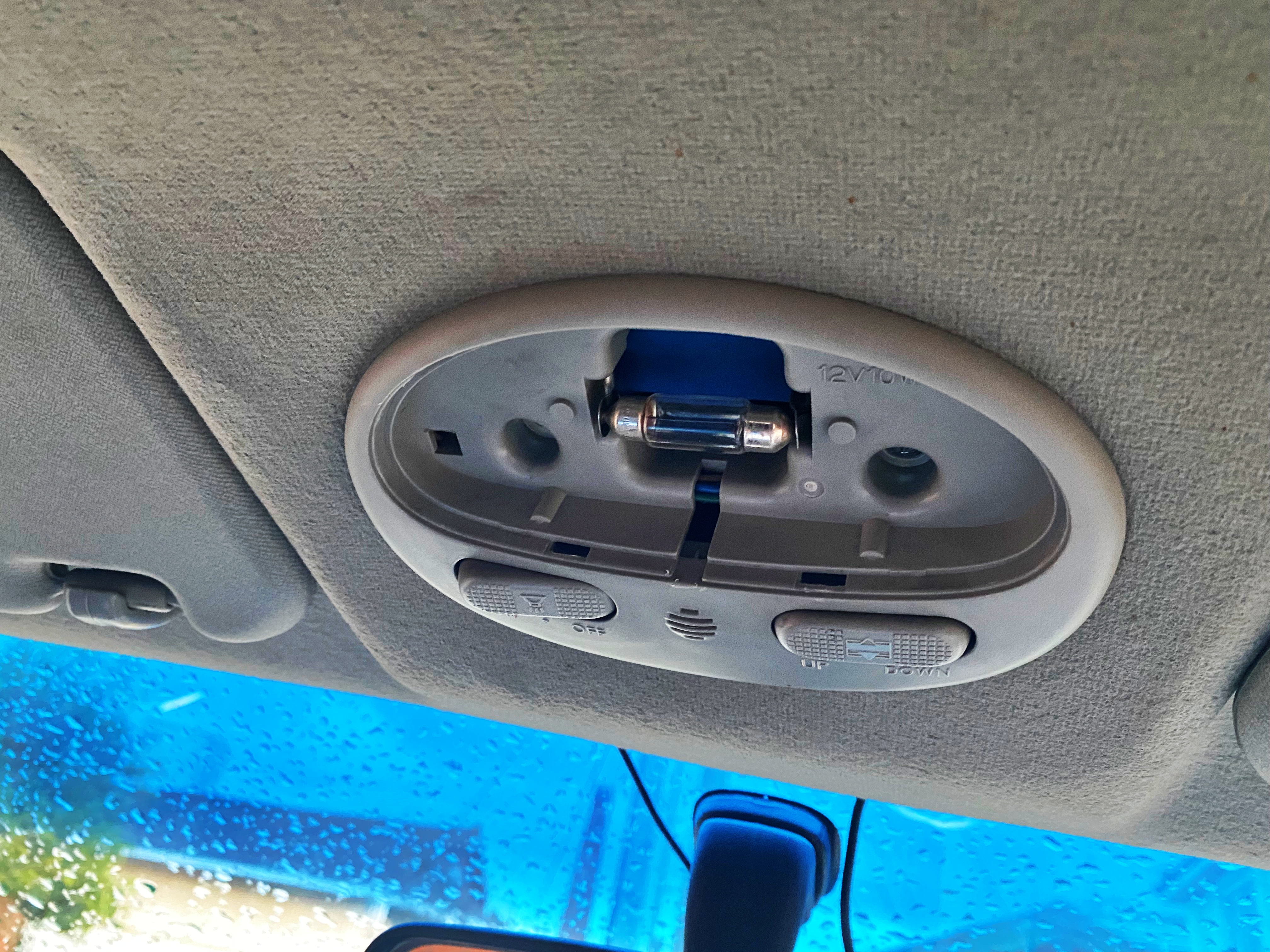실내등 커버를 탈거했습니다. 조금 뚱뚱해보이는 전구가 자리잡고 있네요.