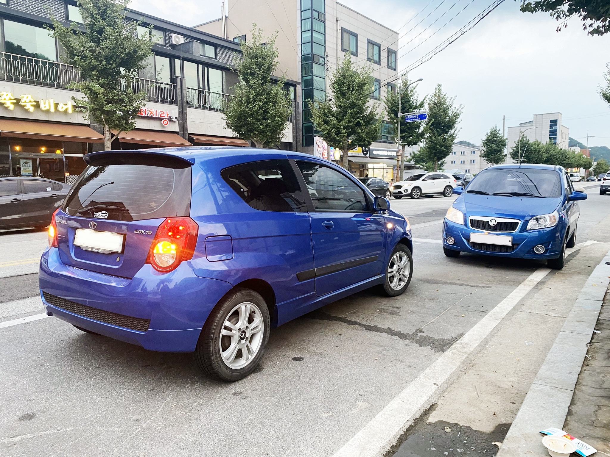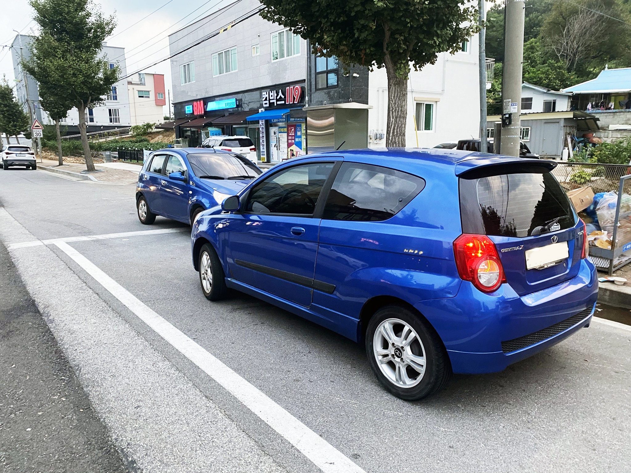 시운전에 나가봅니다. 뒤에서 잡아당기던 증상이 사라졌습니다. 전에도 그럭저럭 차급치곤 경쾌하게 나가긴 했지만 더 잘 나갑니다. 마침 시운전을 갔다가 홀덴 엠블렘을 부착한 같은 색상의 젠트라X를 보고 나란히 세워 사진을 촬영합니다.