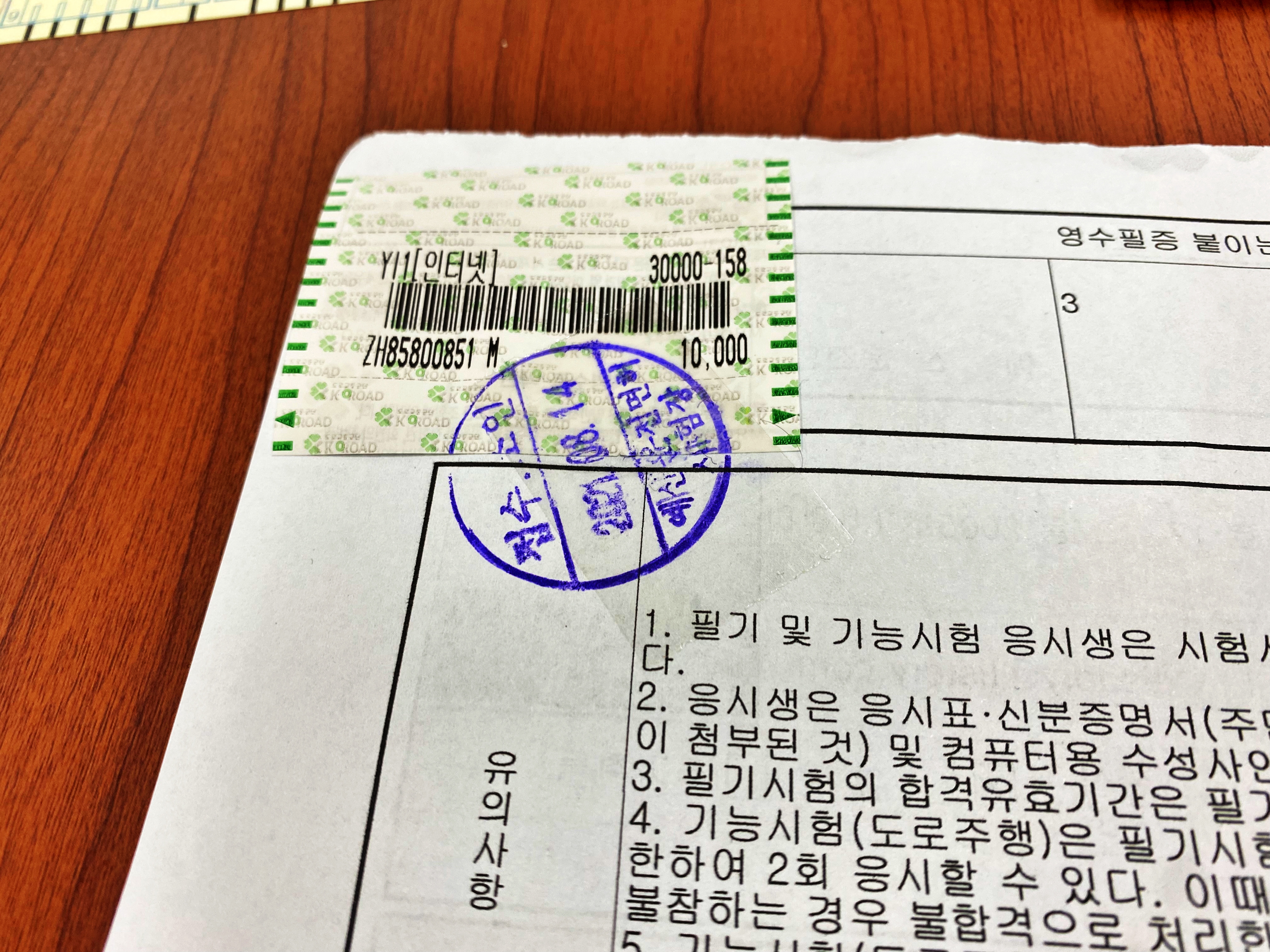 응시표 뒤에는 영수필증이 붙어있습니다.