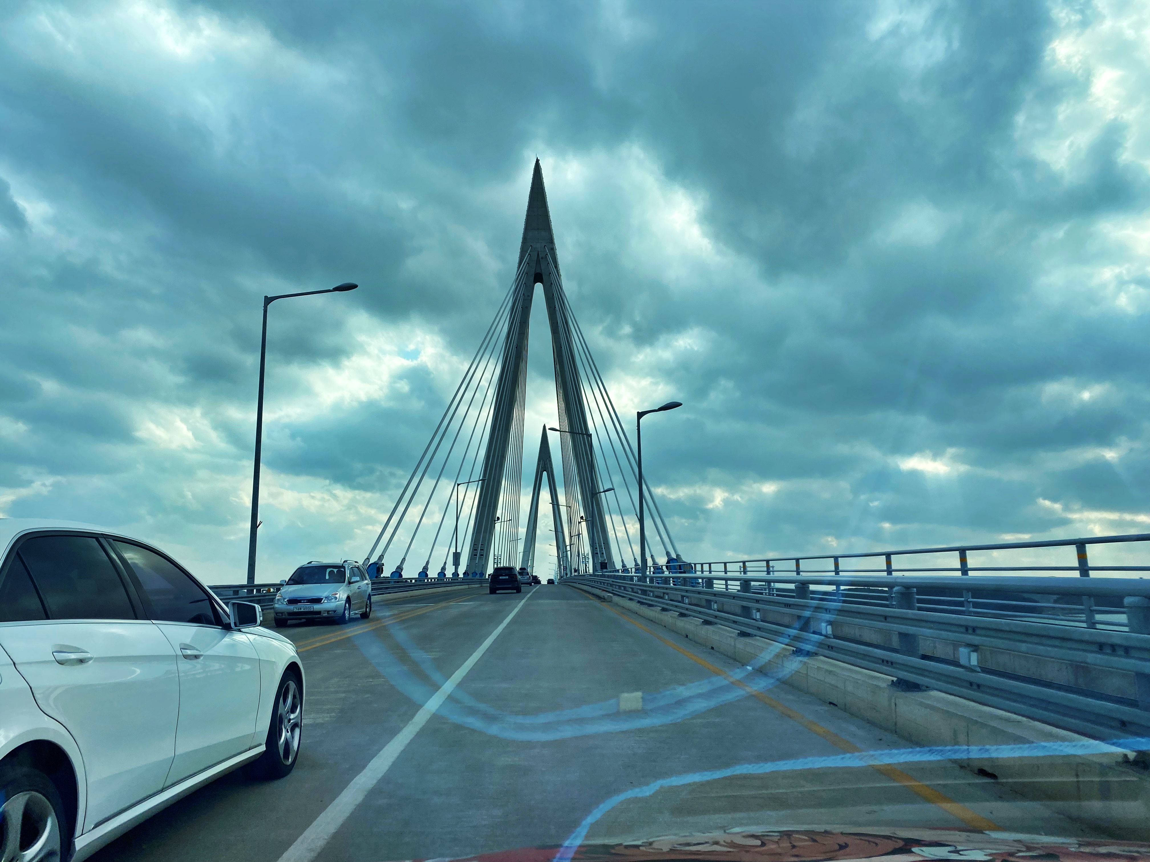 안면도 방향의 상행은 1차로, 원산도 방향의 하행은 2차로네요. 이 교량을 지나도 왕복 3차로는 계속됩니다. 원산도 중간쯤 가야 4차로로 늘어나더군요.