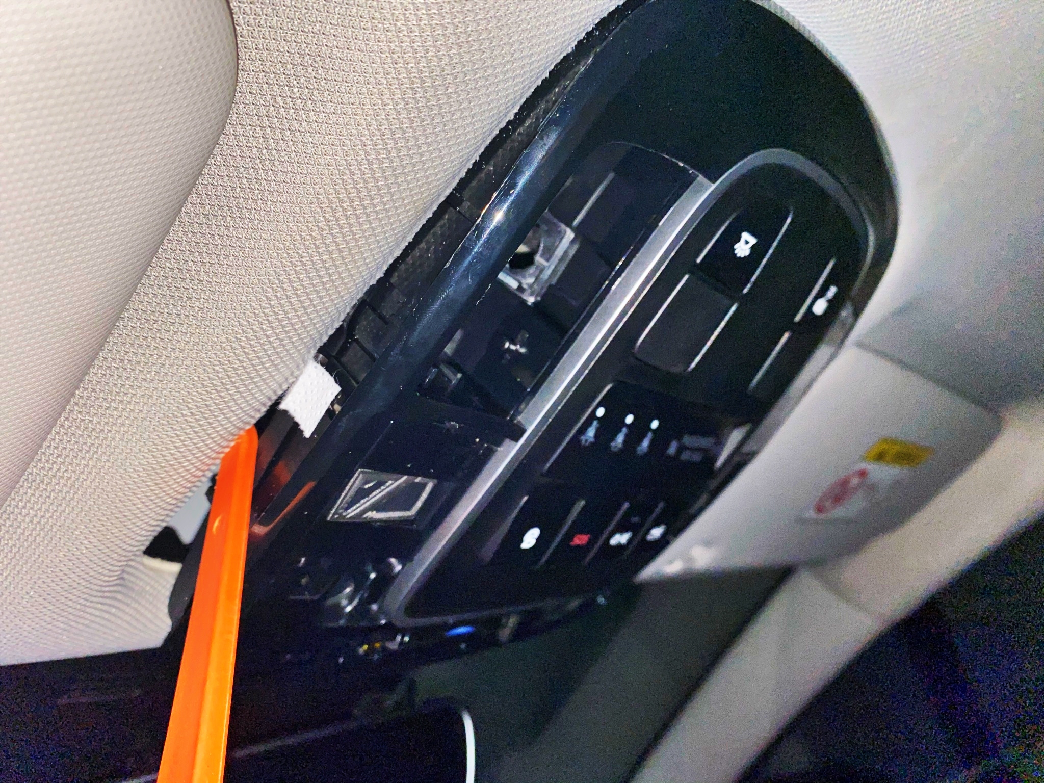 이전세대 차량(아반떼 AD, 투싼 TL, LF쏘나타 등)만 하더라도 썬글라스 보관함을 열고 그 안으로 보이는 피스 두개를 풀어준 뒤 내장재 리무버나 일자드라이버로 제껴내면 쉽게 탈거가 가능합니다만, 하이패스 단말기가 룸미러에서 실내등으로 옮겨온 현행세대 차량은 뜯어야 할 커버가 하나 더 늘었습니다.