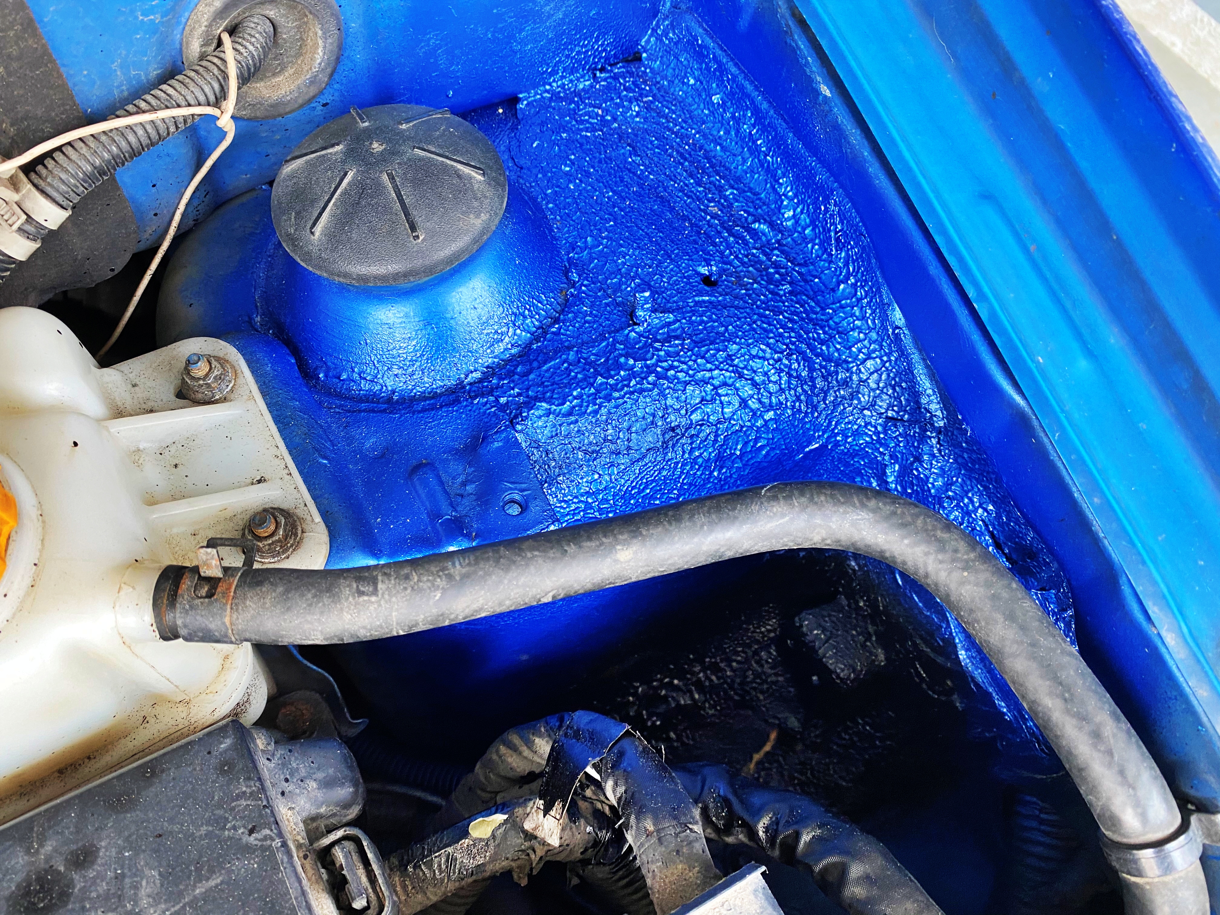 보이는 부위도 아니고, 인사이드판넬과 휠 하우스를 다 뜯어내고 붙여야 하는 작업인데 간단한 판금으로 방청까지 완벽하게 해서 마무리했으니 이 정도면 뭐 준수하다고 생각합니다. 쇼바에 칠이 묻고 에어클리너 자바라 호스에 칠이 조금 묻었지만 그다지 개의치 않습니다.