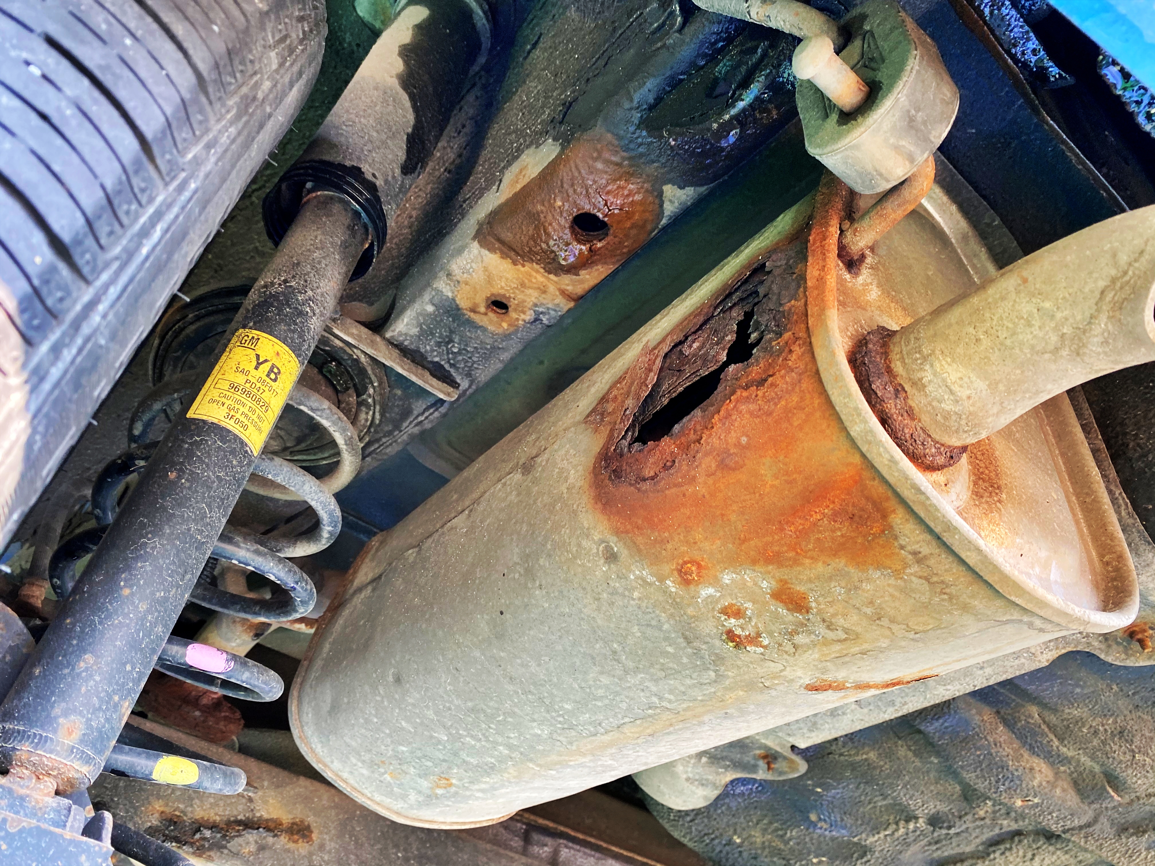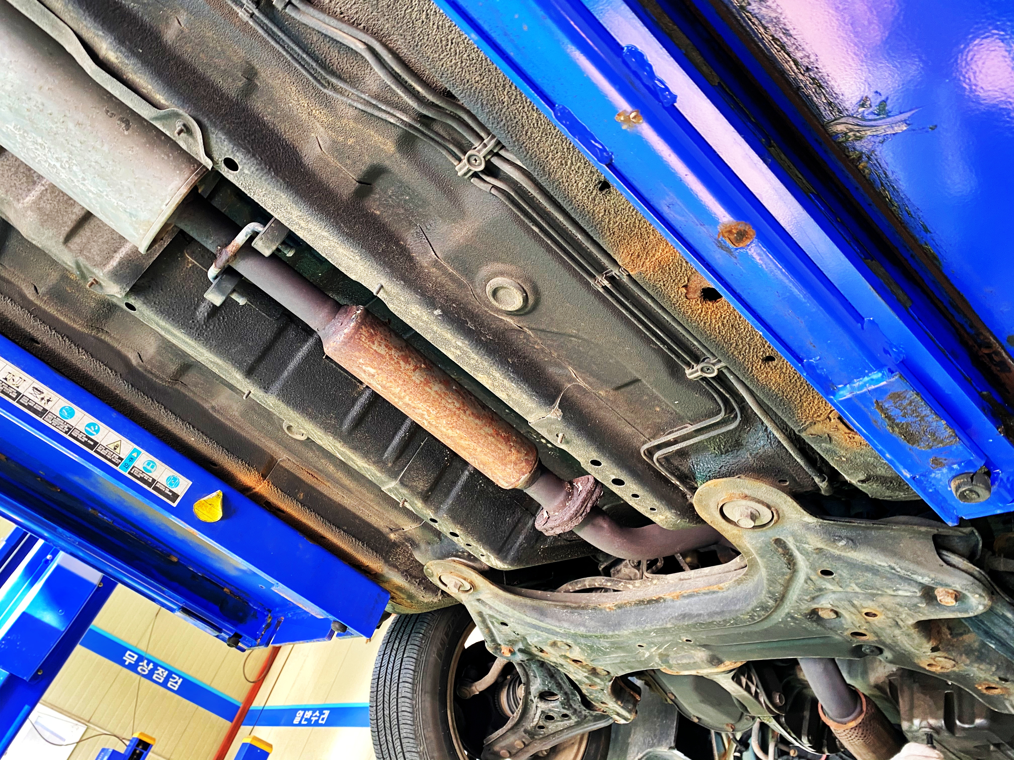 그냥 다 썩어버린 엔드머플러의 모습입니다. 빠른 교체가 답입니다만, 원체 많이 팔린 차도 아니고 1.2와 1.6 모델이 생각보다 호환되지 않는 부품이 많아 알아봐야 합니다. 많이 팔린차면 몰라도 팔리지도 않은 차량인지라 저렴한 비품의 선택지가 좁다는 것은 단점입니다.