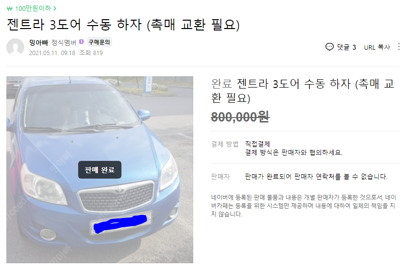 촉매가 나갔답니다. 그래도 희소가치를 생각한다면 매우 저렴한 가격입니다. 딱히 운행에는 지장이 없고 검사도 아직 한참 남아있으니 천천히 고치면 됩니다. 업무용으로 활용하다가 팔더라도 분명 본전은 치리라는 확신이 들었습니다. 확신을 가지고 연락을 했습니다.