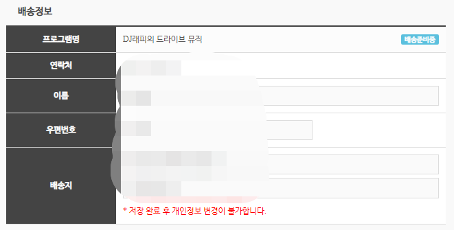 저장 완료 후 배송준비중으로 변경되고 정보 변경이 불가능하다고 합니다.