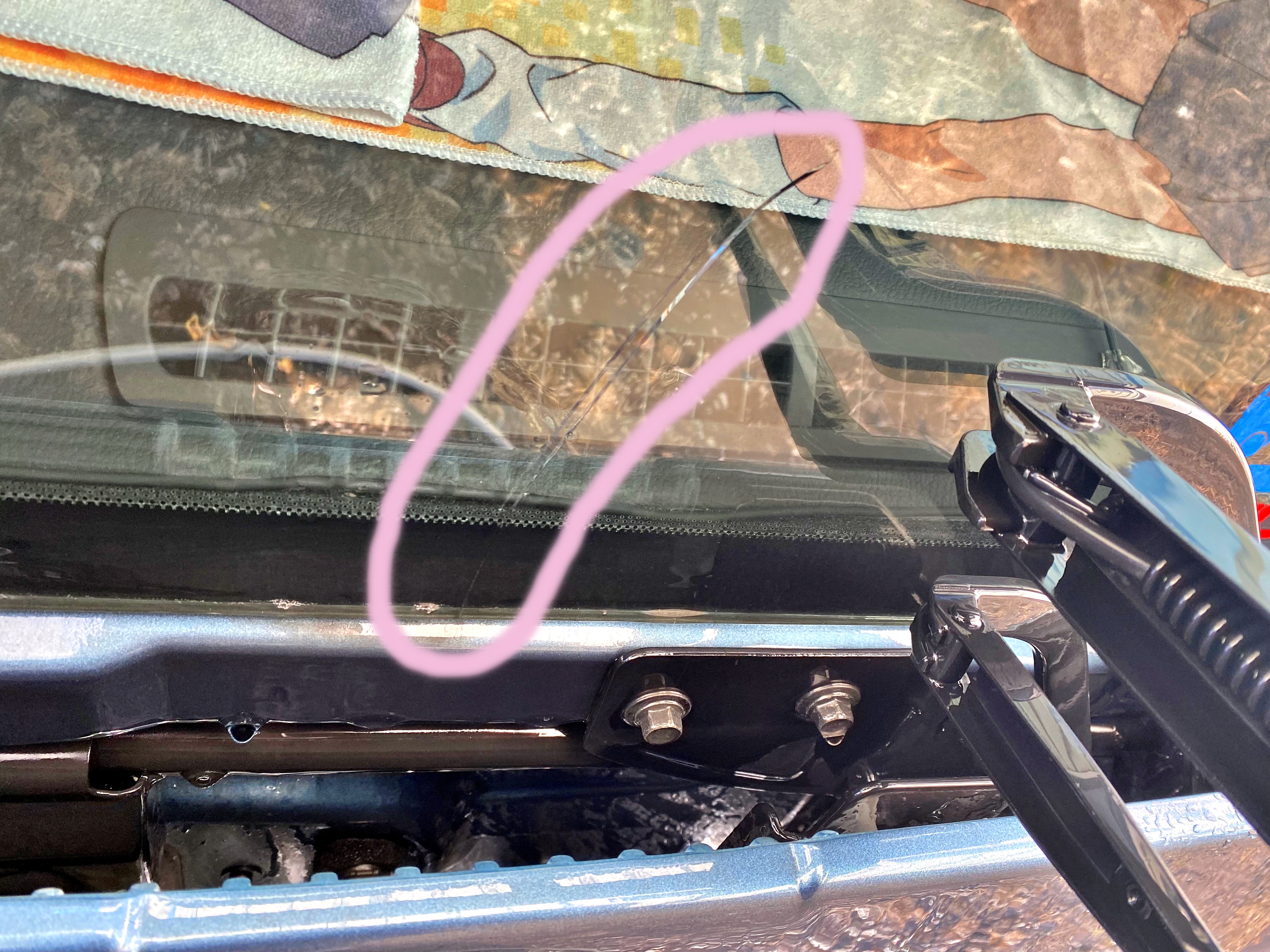 차에서 내리려고 보는데 좌측 와이퍼 부근으로 금이 쭉 가있네요.