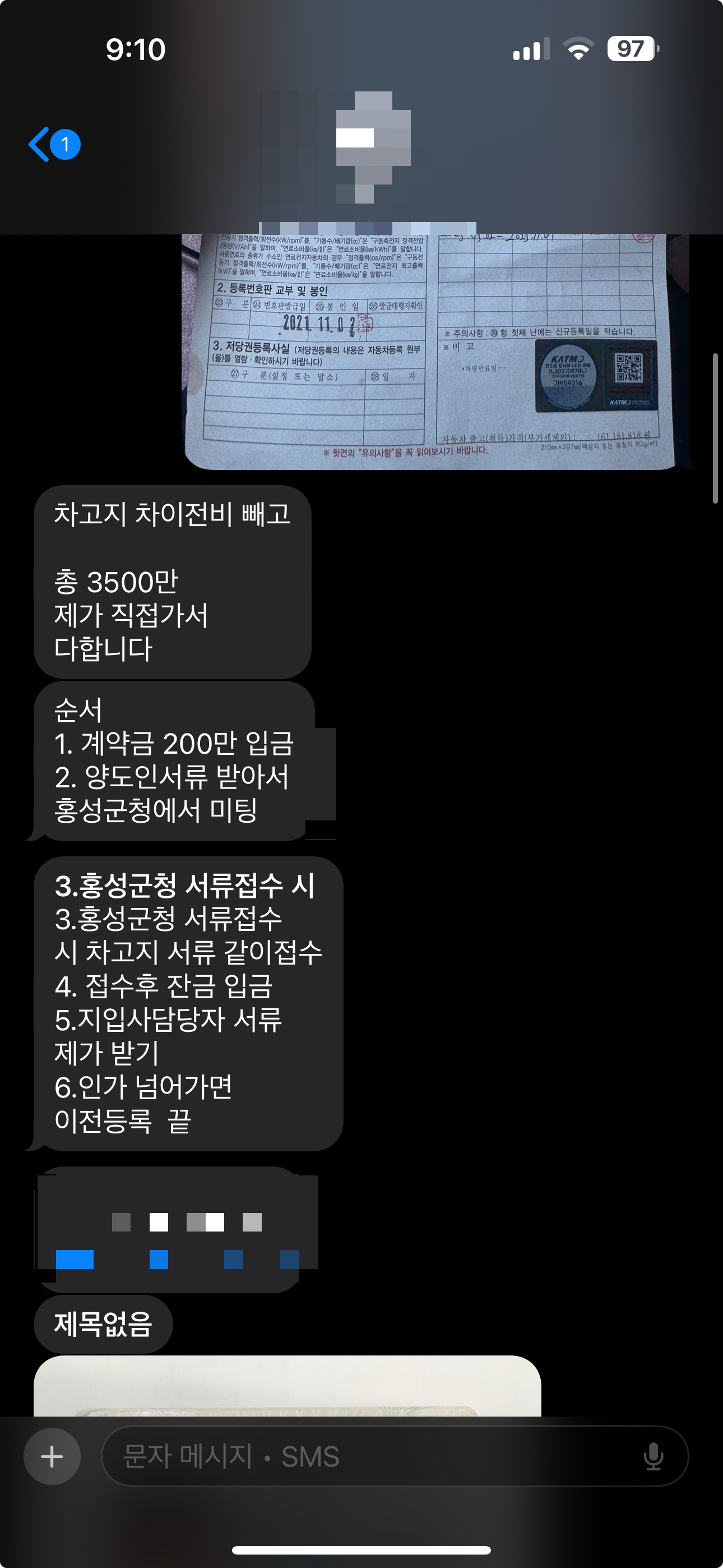 한 곳에서는 번호판 가격만 3400만 원을 부릅니다. 또 한 곳에서는 3350에 부대비용을 포함하여 3500에 해주겠다고 합니다. 후자였던 남바원의 이지호 팀장님과 일을 진행하기로 합니다. 마침 고향도 예산이라고 하시더군요. 깎아달라 뭐 그런 토 하나 달지 않고 동향사람이니 그냥 믿고 맡겼습니다.