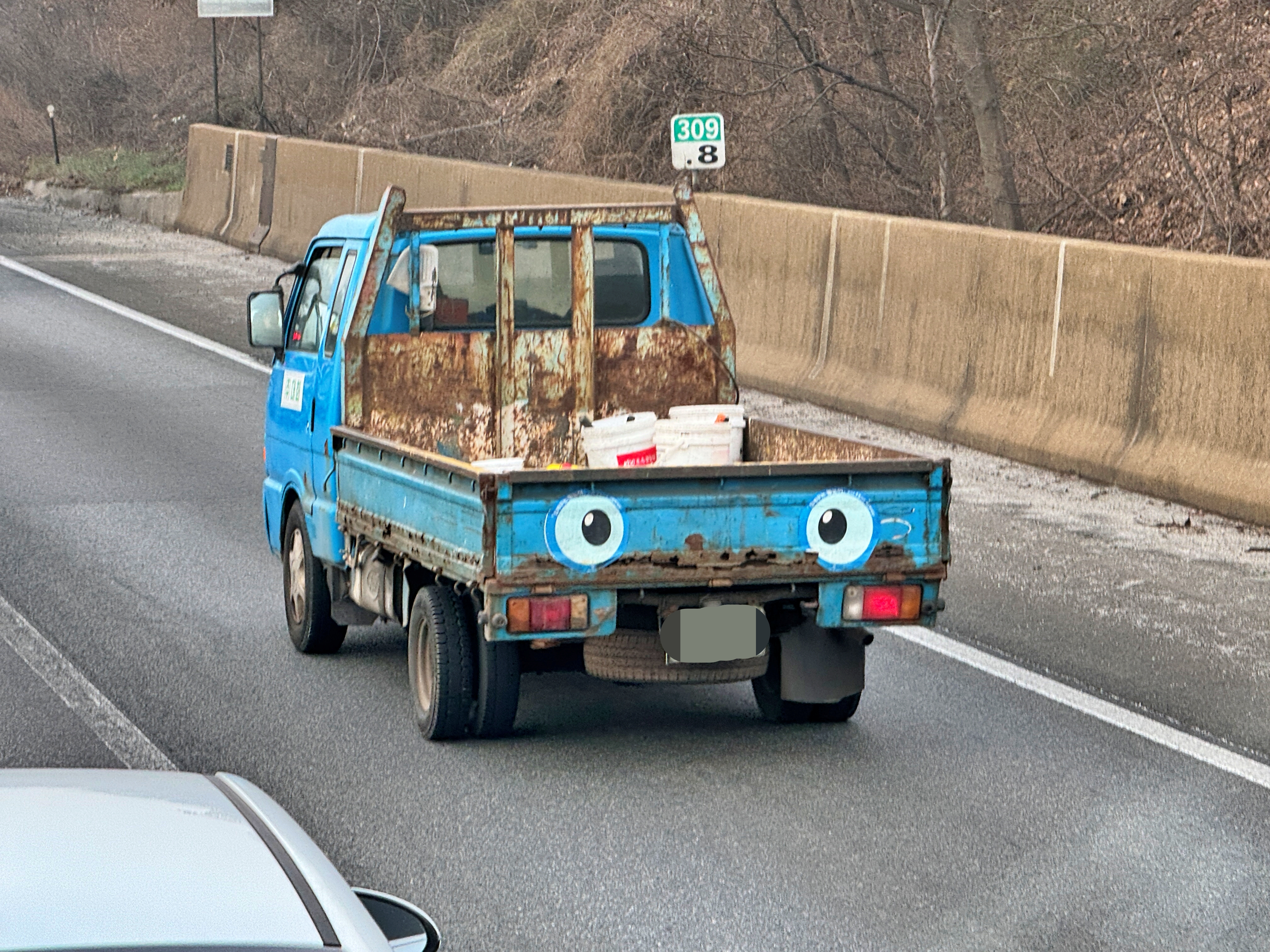 운전석이 있는 캐빈은 상대적으로 깔끔했습니다만, 적재함 문짝은 부식으로 구멍이 다 뚫렸고 후미등은 하나는 들어오지 않았습니다. 스페어 타이어가 고정된 브라켓 역시 삭았는지 달리면서 스페어 타이어가 흔들흔들 하더군요. 그럼에도 1995년으로부터 30년이 지난 2025년의 도로를 달리고 있었습니다.