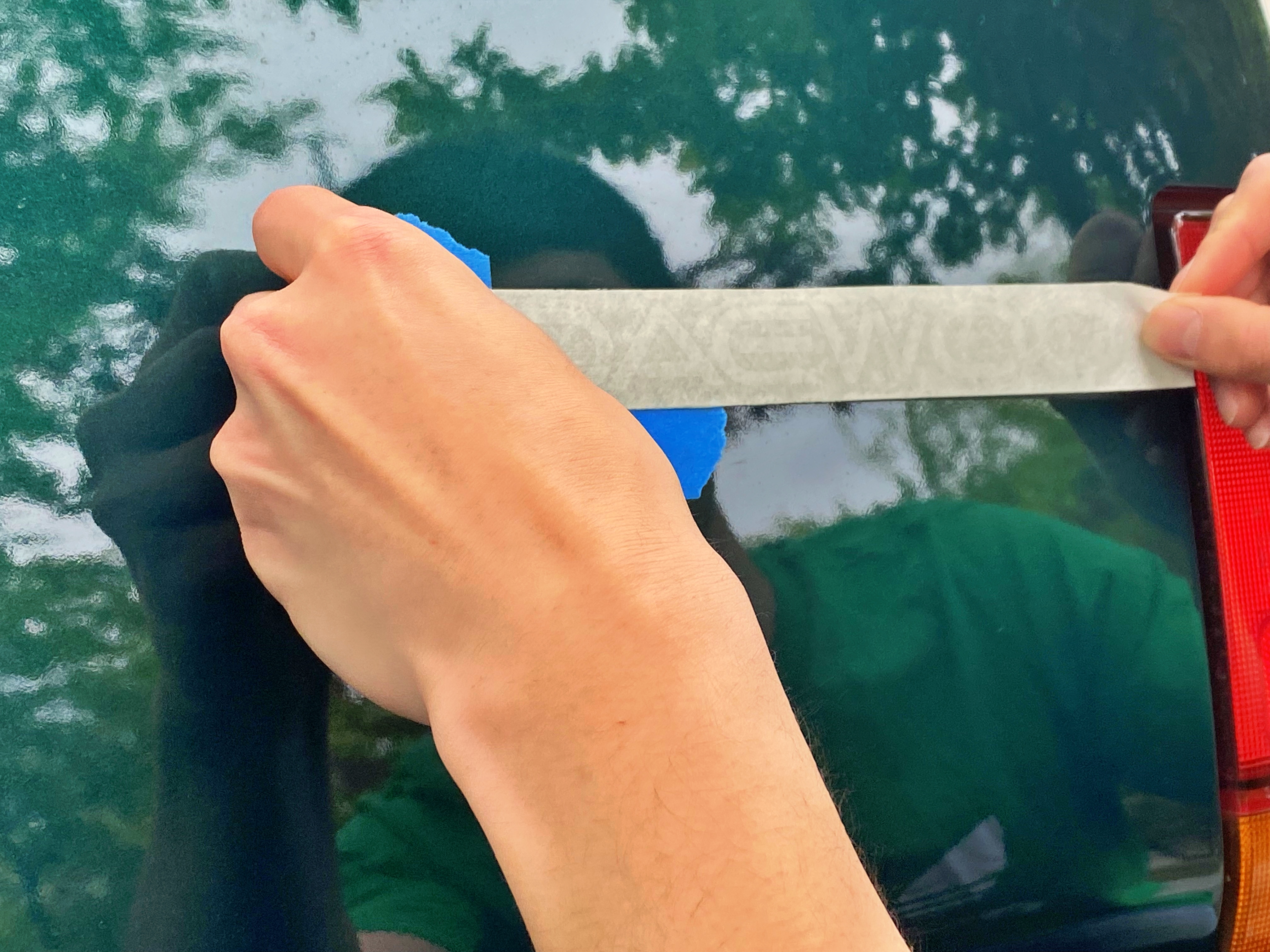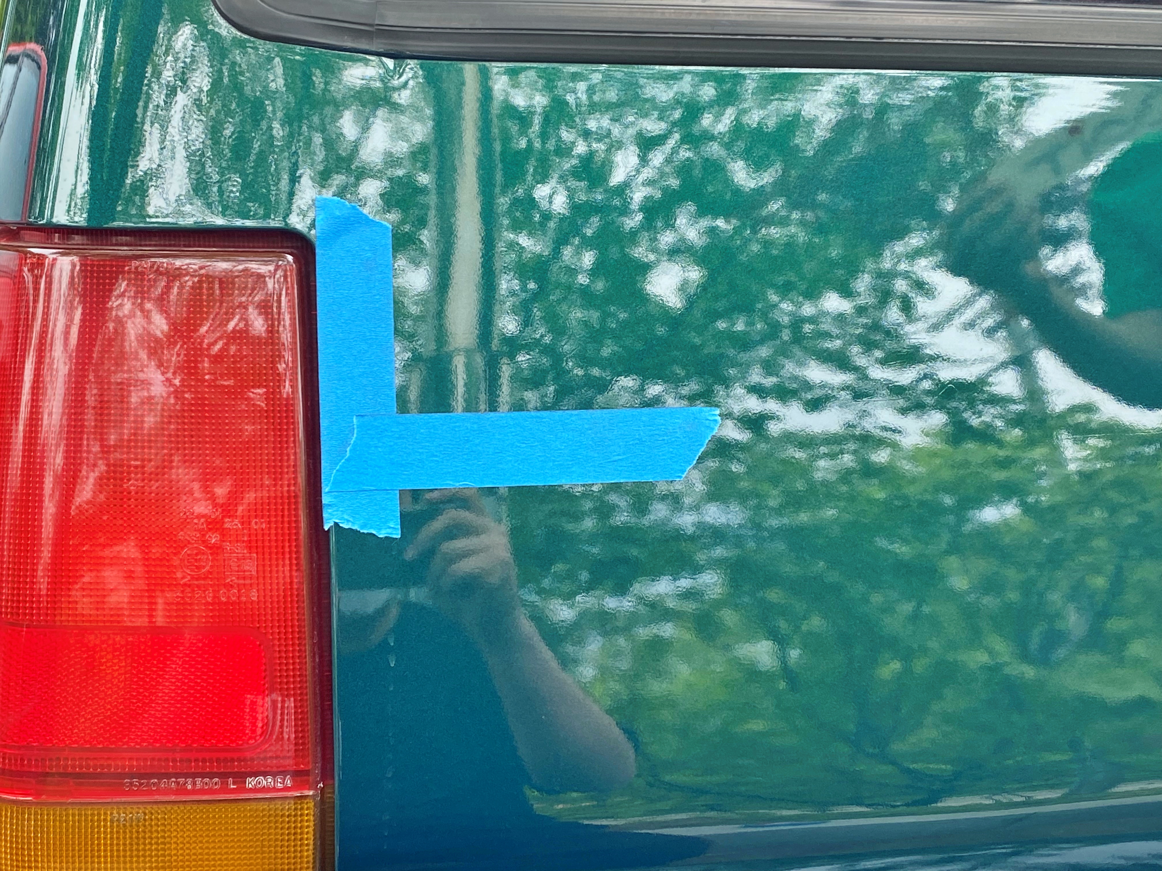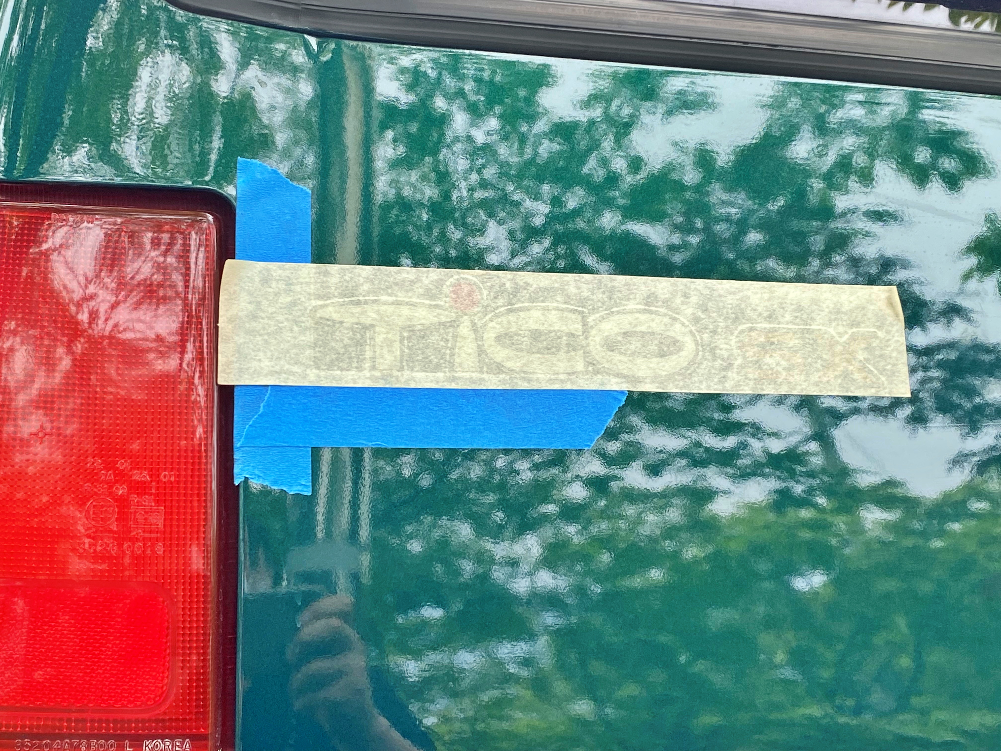 솔직히 순정 자리에 그대로 붙이기는 매우 어렵습니다. 칠을 까내고 새로 전체도장을 올렸음에도 트렁크에 이전 스티커가 붙어있던 흔적이 그대로 남아있어 그 흔적대로 붙여주기만 하면 출고 당시 붙였던 자리에 그대로 붙일 수 있습니다.