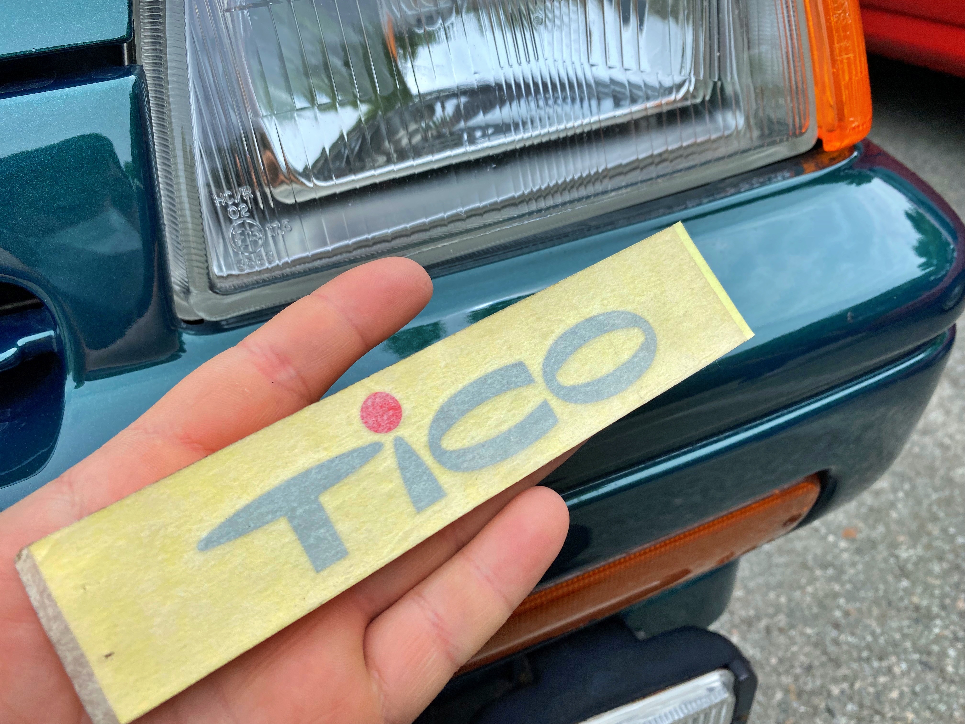 TICO SX(트림명) DAEWOO 그리고 앞범퍼에 붙는 TICO 스티커 총 세가지로 구성되어 있습니다.