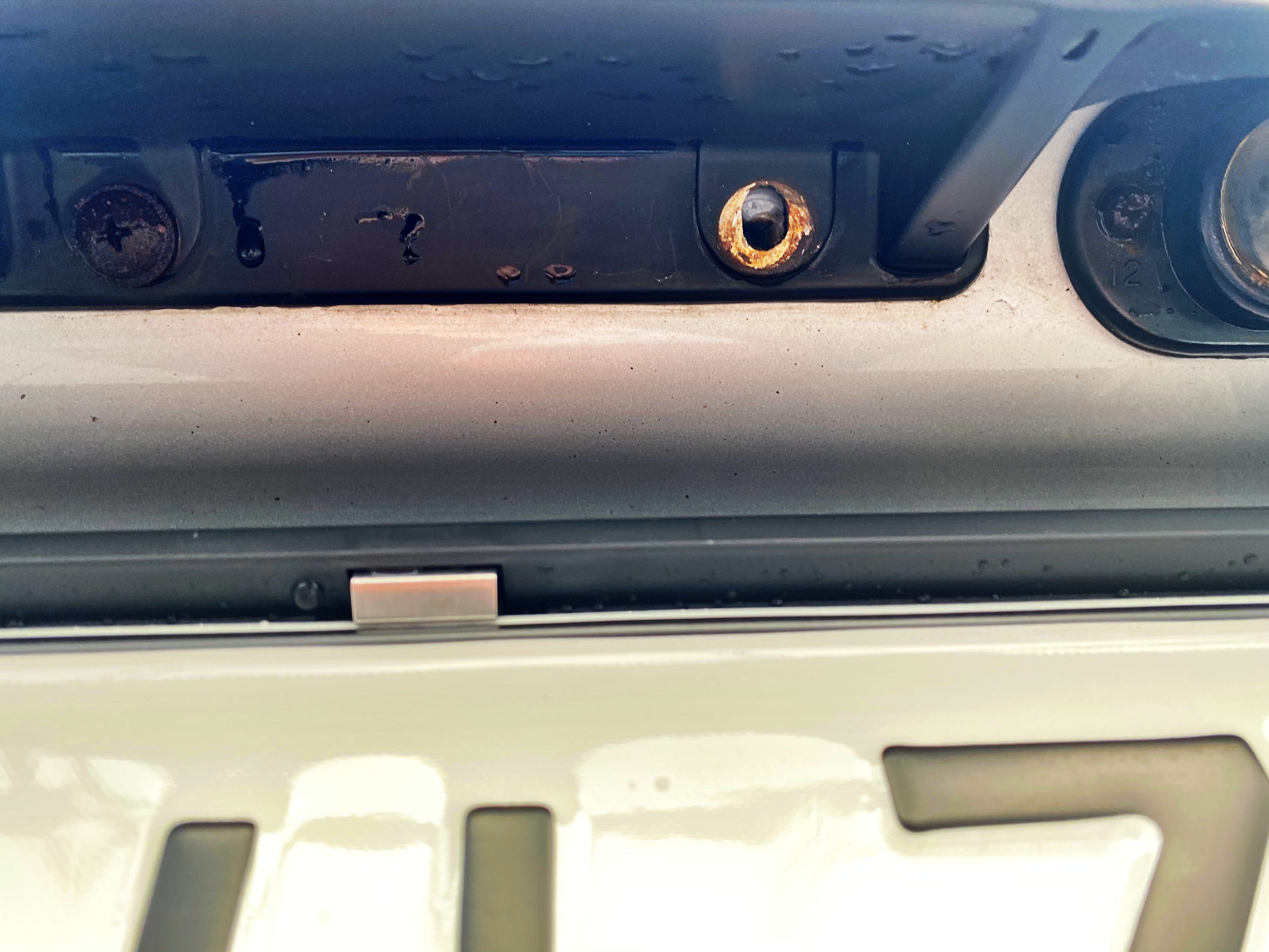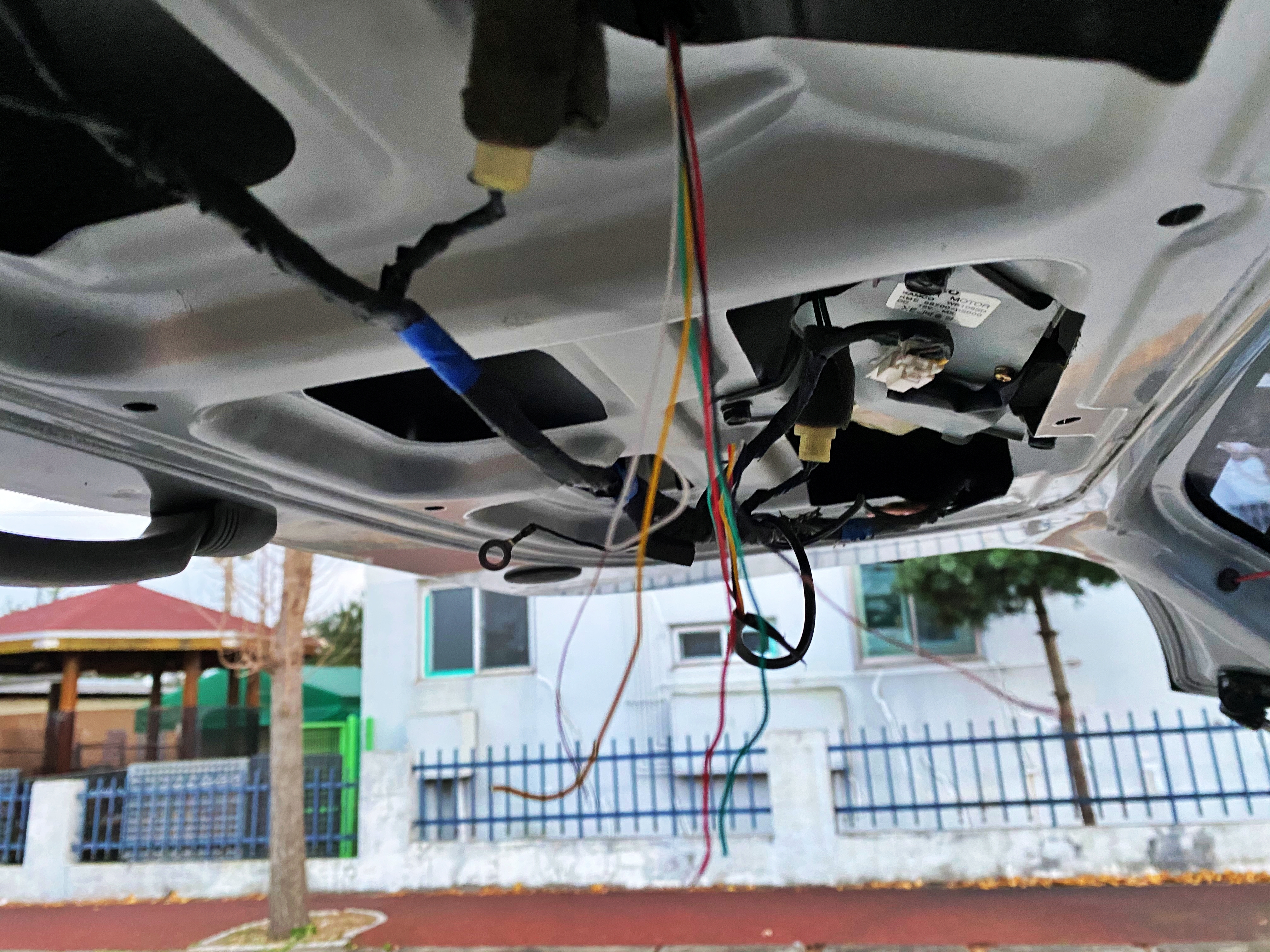 세자리 긴 번호판을 부착하면서 선을 그냥 잘라서 탈거했는데, 철판에 구멍을 뚫지 않고 후방카메라를 살릴 수 있는 방법을 연구하다가 실행에 옮기기로 합니다. 이것때문에 긴 번호판의 장착을 포기하려 했습니다만, 그래도 일단 달고 난 다음 해결책을 찾아내서 긴 번호판도 달고, 후방카메라도 그대로 살려냈습니다.